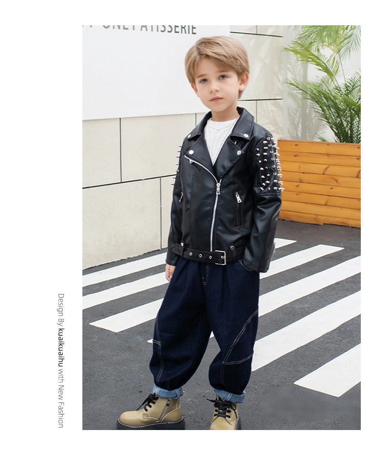 아동복 아동 퍼포먼스 가죽 자켓 리벳 오토바이 가죽 자켓 2025 봄, 가을 새로운 한국 스타일 소년 소녀 자켓 트렌디하고 멋집니다.스토어 가기