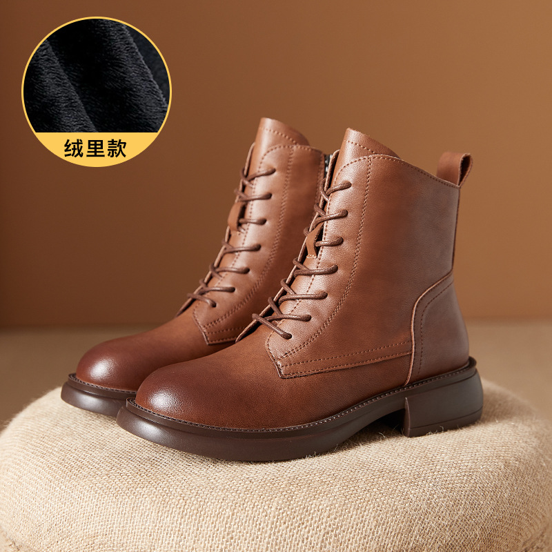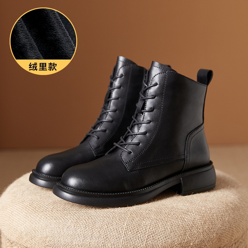 부츠 여자의 2023 겨울 새로운 영국 스타일 마틴 부츠 플랫 기모 빈티지 면 부츠 캐주얼 모든 일치 앵클 부츠스토어 가기