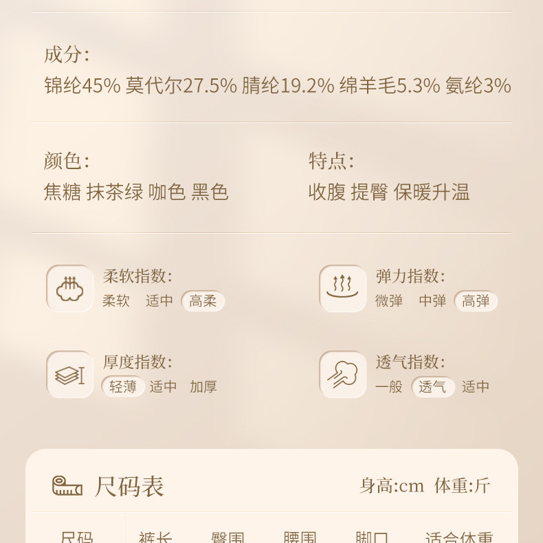 2.羊毛裤含有发热腈纶和羊毛材质,保暖性更好