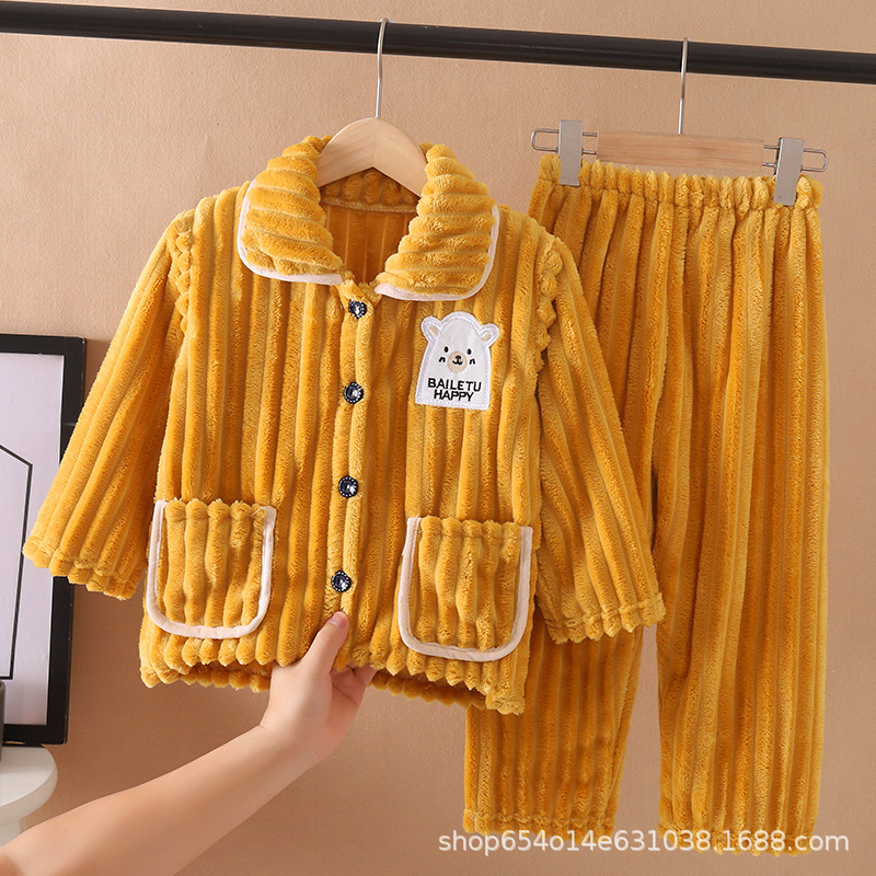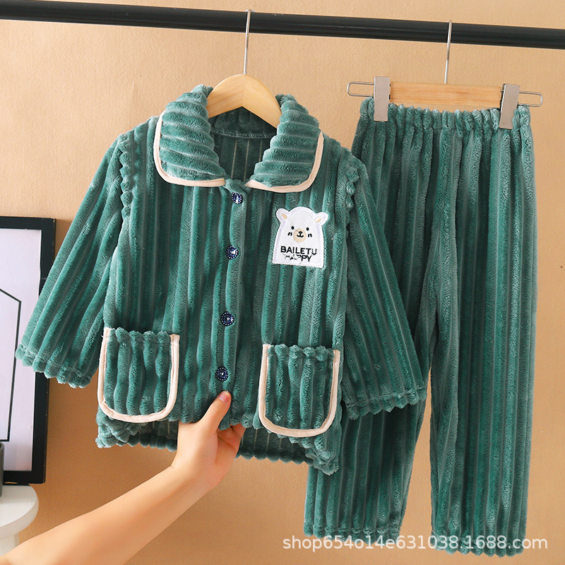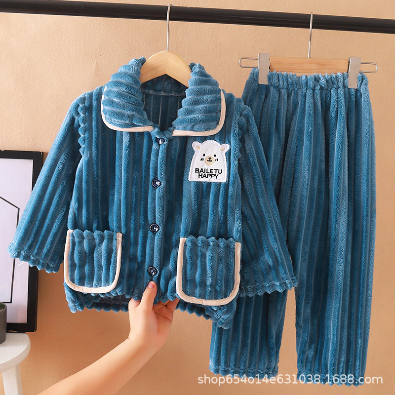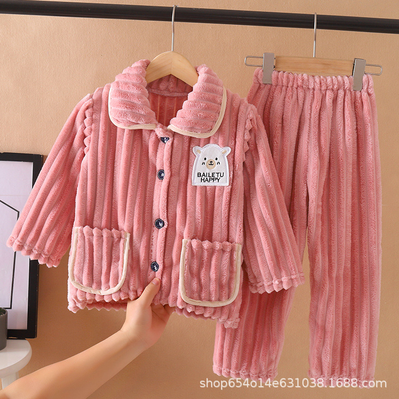 남성과 여성의 가을과 겨울 어린이 플란넬 잠옷 아기의 산호 양털 두꺼운 소년 소녀 가정복 세트스토어 가기