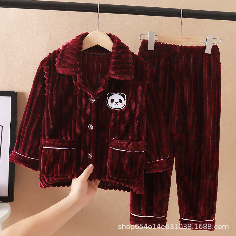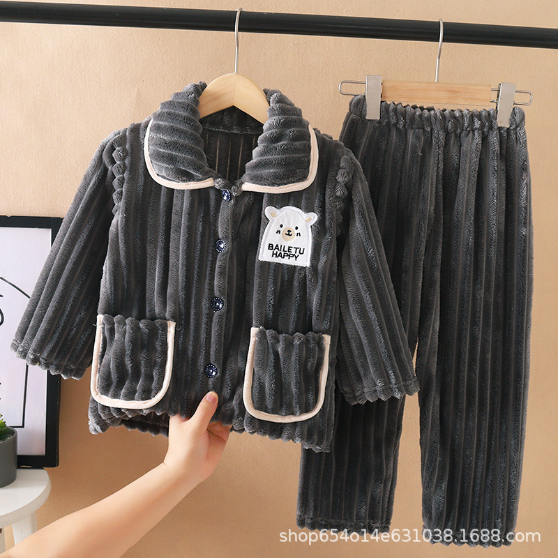 남성과 여성의 가을과 겨울 어린이 플란넬 잠옷 아기의 산호 양털 두꺼운 소년 소녀 가정복 세트