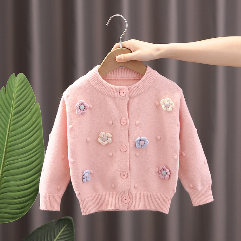 여아 스웨터 가디건 2022 가을과 겨울 새로운 한국 단색 니트 스웨터 아기 소녀 꽃 탑 긴 소매 스웨터스토어 가기