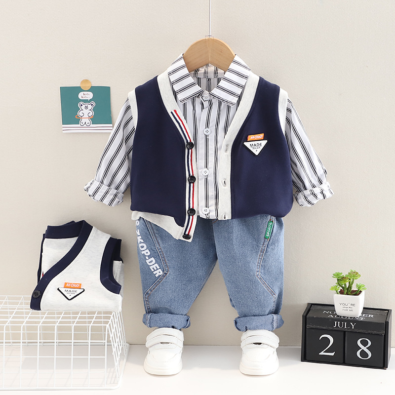 캐주얼 가슴 라벨 아동 카디건 한국 패션 cool in 잘 생긴 아기 영국 스타일 스트라이프 셔츠 조끼 도매스토어 가기