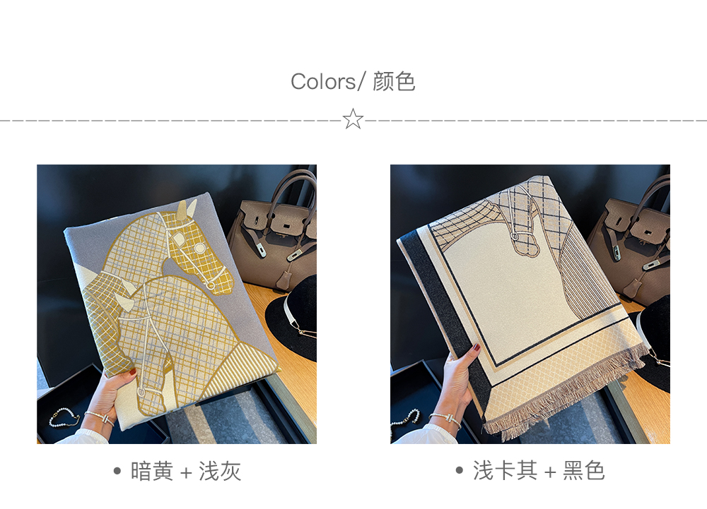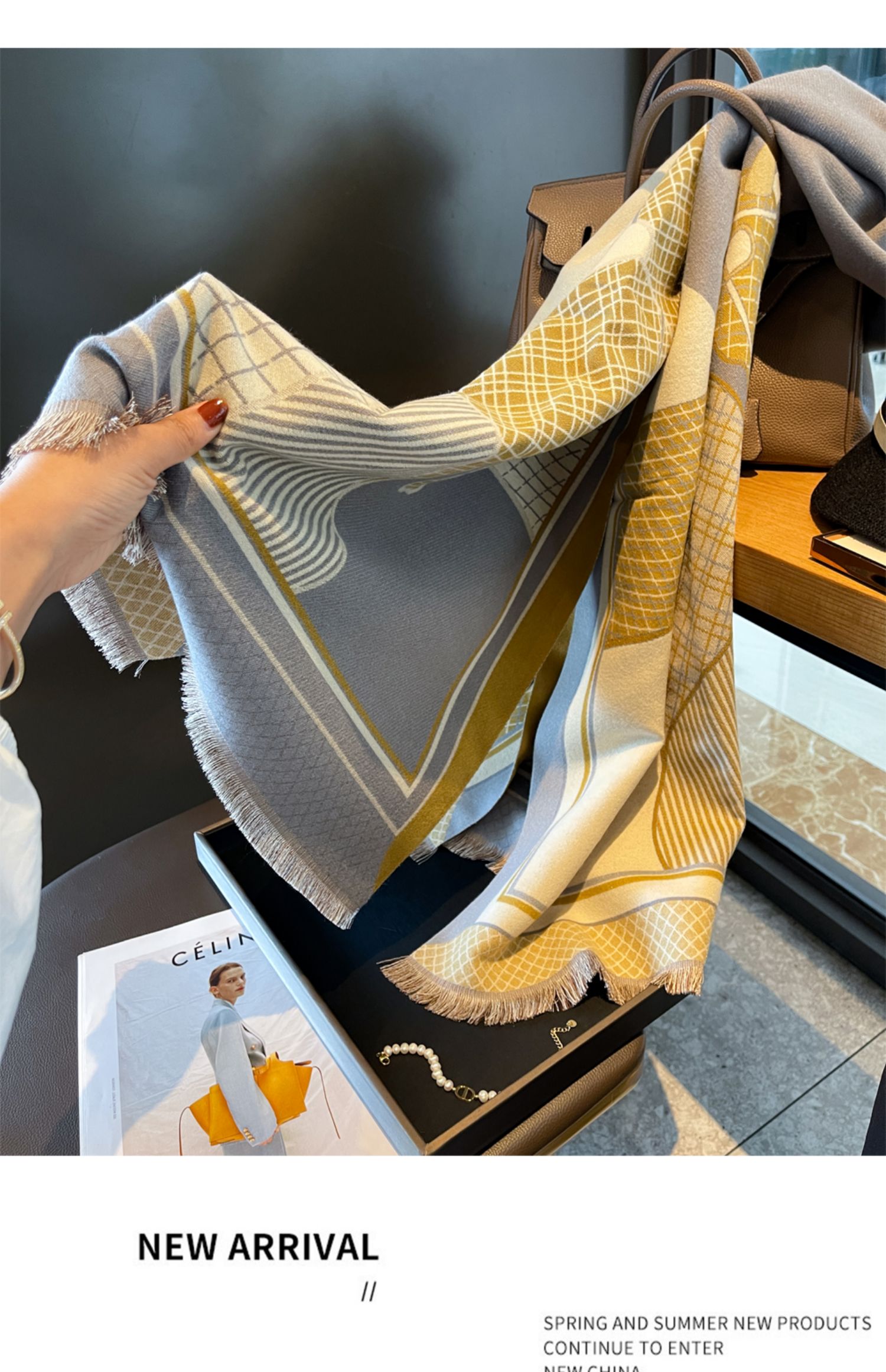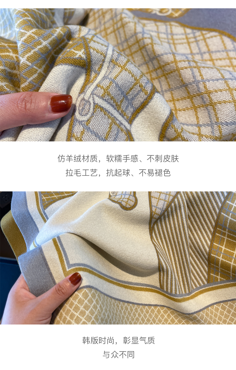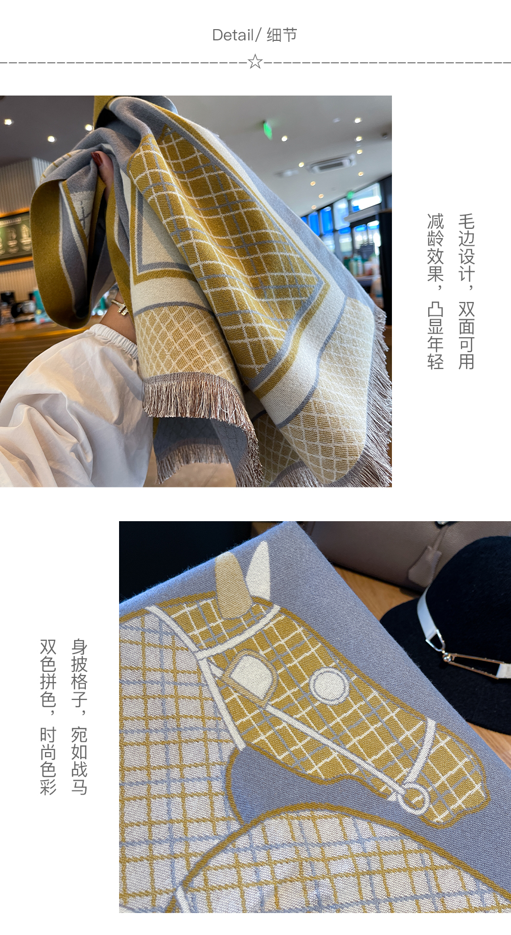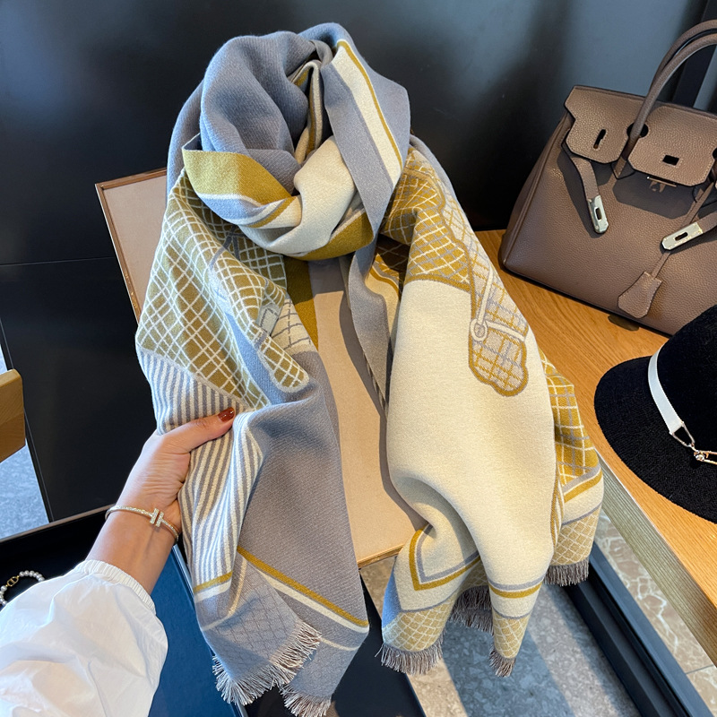 가을과 겨울 한국 스타일 스카프 숄 긴 빛 럭셔리 우아한 말 패턴 두꺼운 따뜻한 양면 캐시미어 스카프 여성용스토어 가기