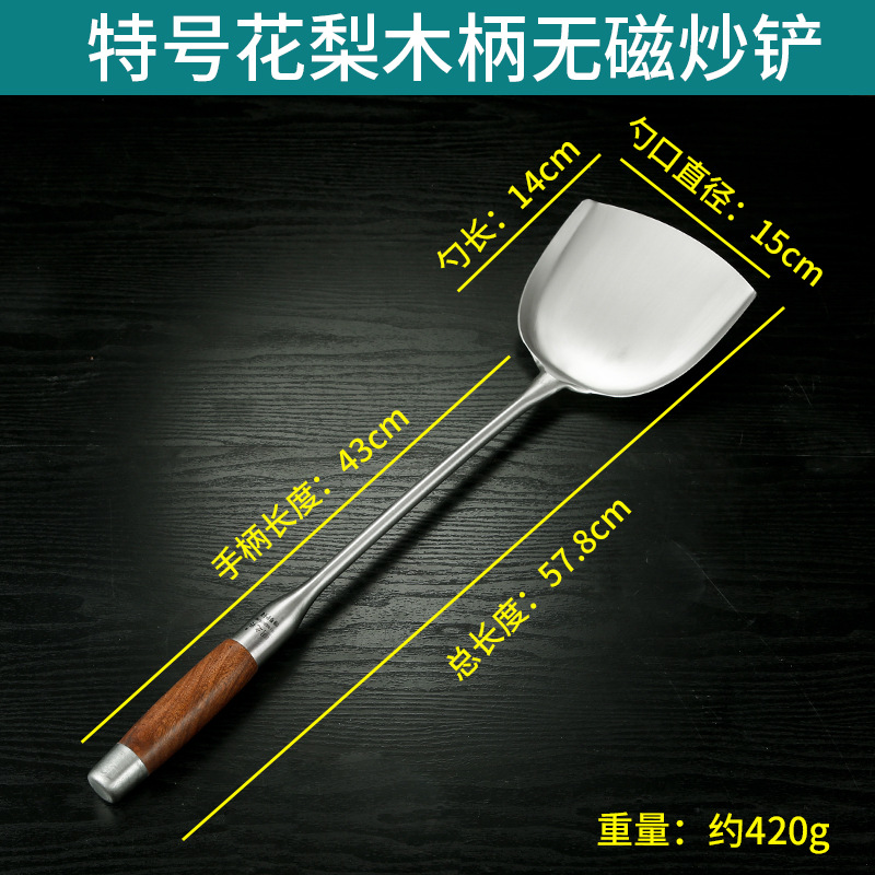 두꺼운 볶음 스푼 무자성 로즈우드 스테인레스 스틸 요리사 말 스푼 상업용 긴 손잡이 볶음 삽 스푼 스쿠터 매점스토어 가기