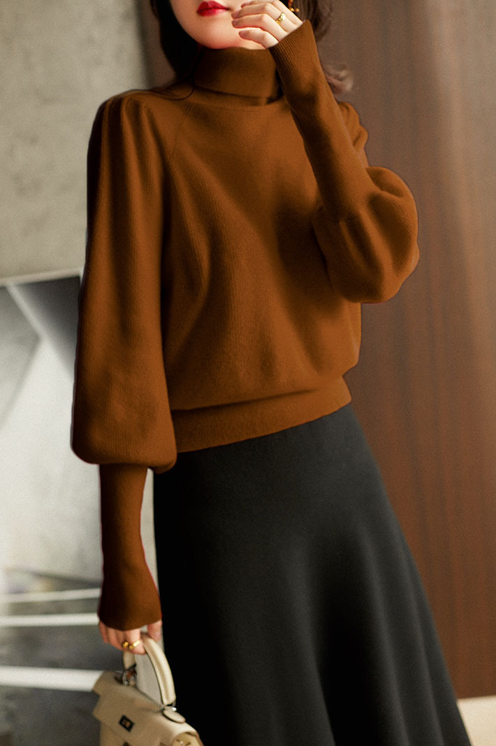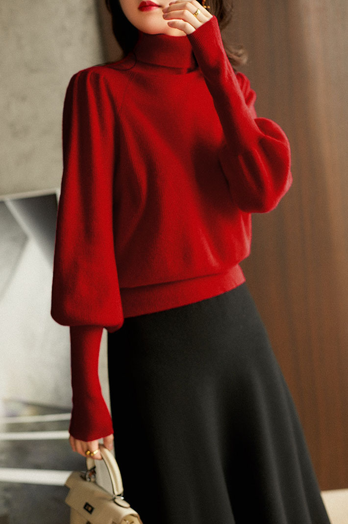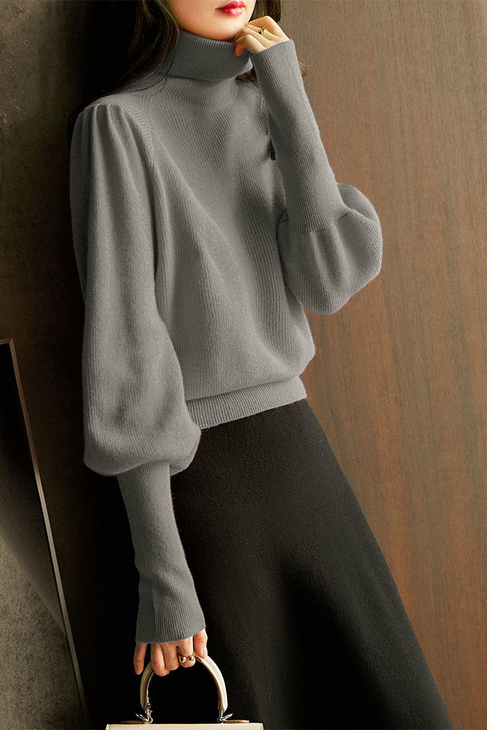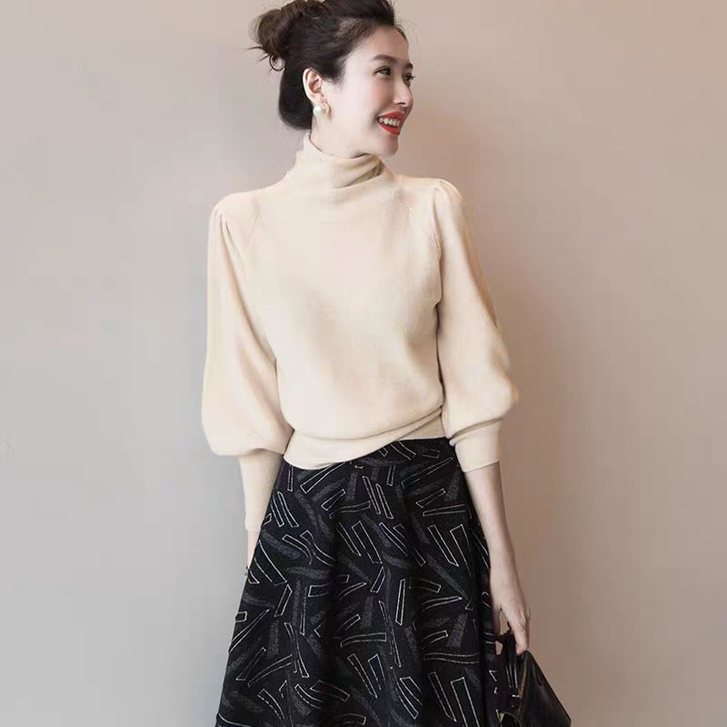 부드러운 지적 터틀넥 퍼프 소매 가을과 겨울 클래식 다목적 슬리밍 우아한 슬림 핏 바닥 니트 탑