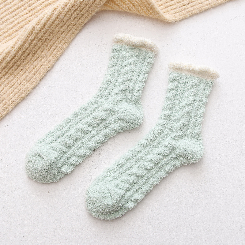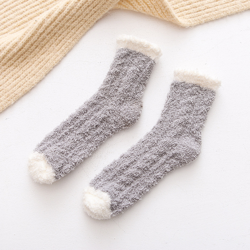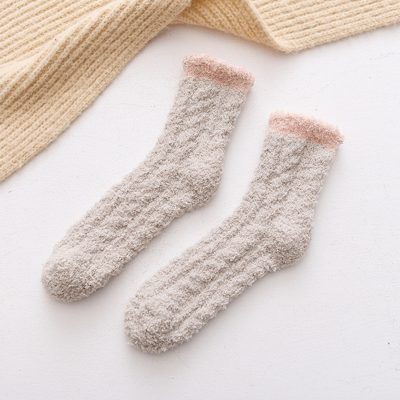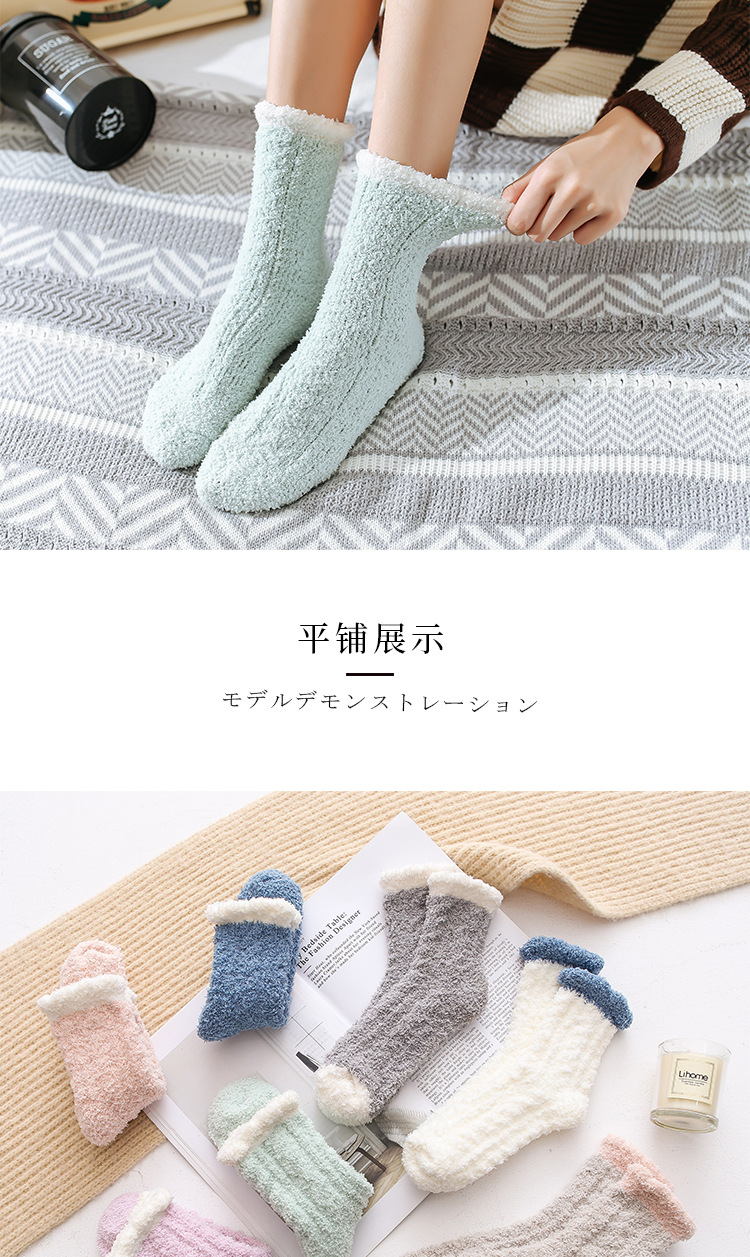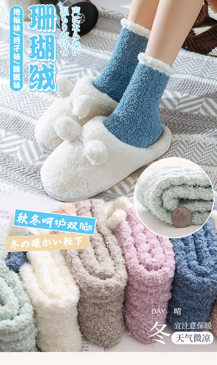 산호 벨벳 양말 여자의 가을과 겨울 기모 두꺼운 수건 바닥 양말 긴 수면 양말 따뜻한 중간 수면 양말