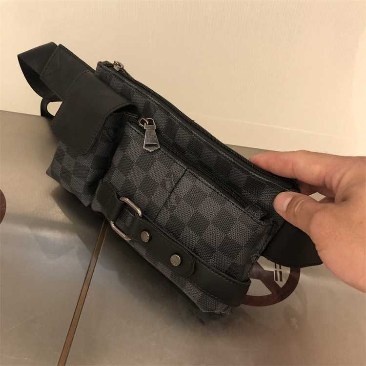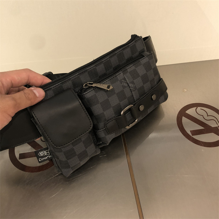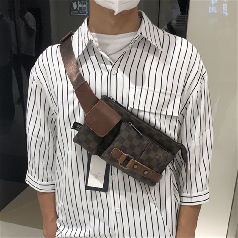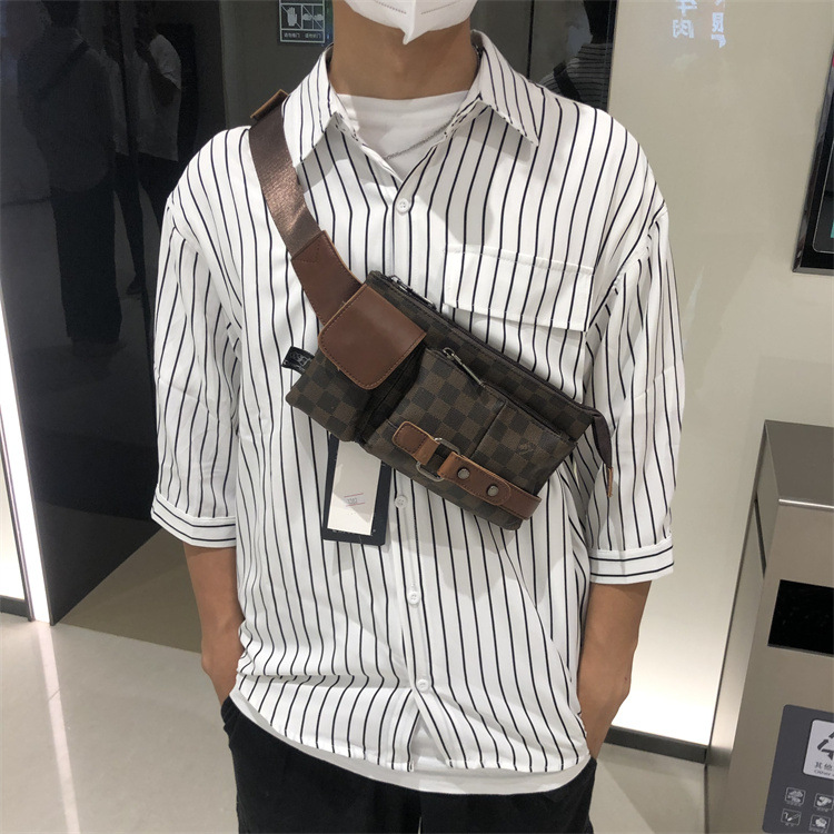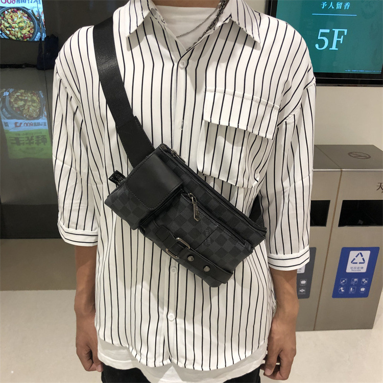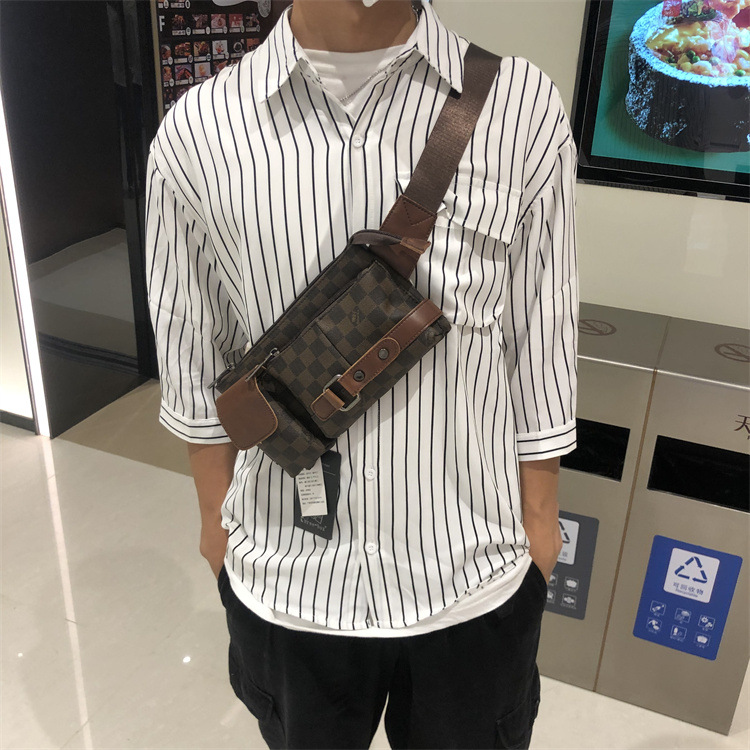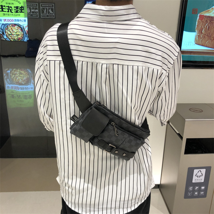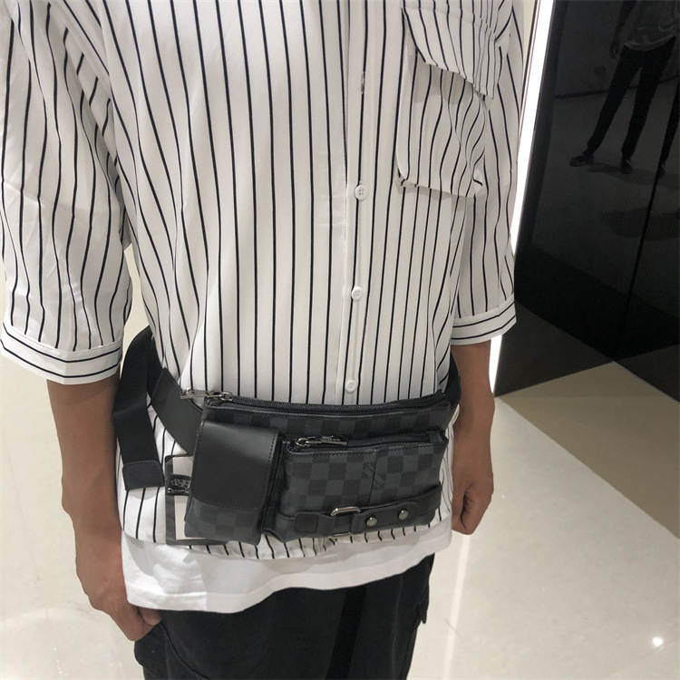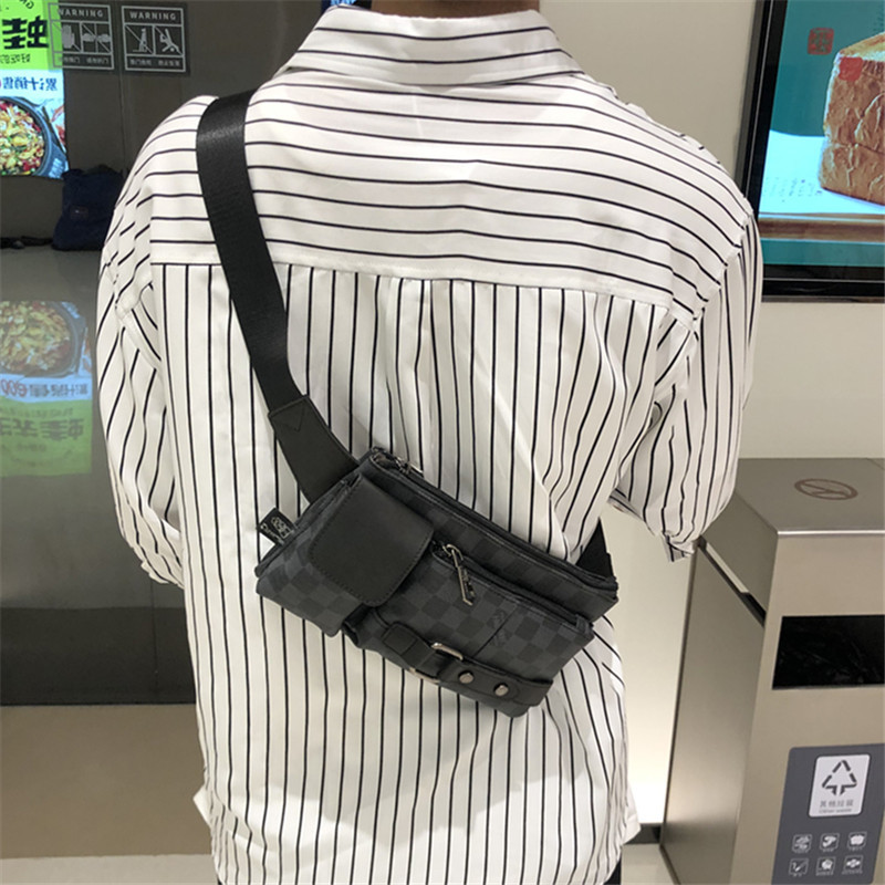 쓰리 박스 패션 남성 가슴 가방 트렌디 한 격자 무늬 크로스 바디 남성과 여성의 허리 가방 일본 지퍼 작은 배낭 남성용 가방스토어 가기