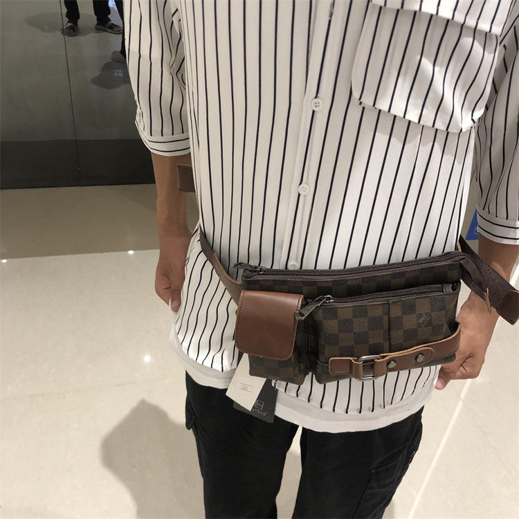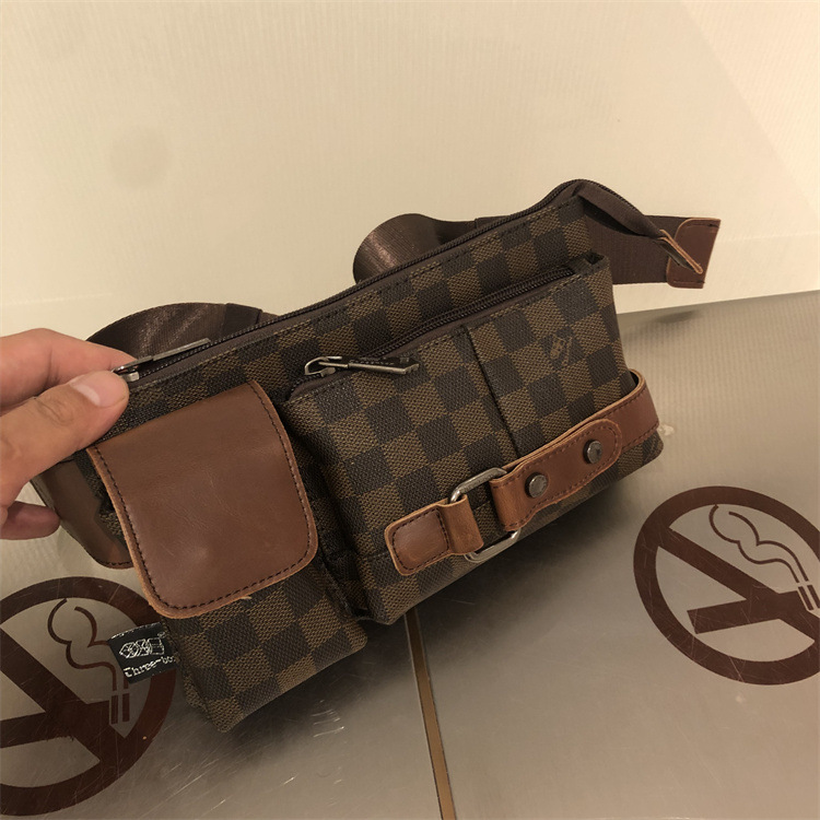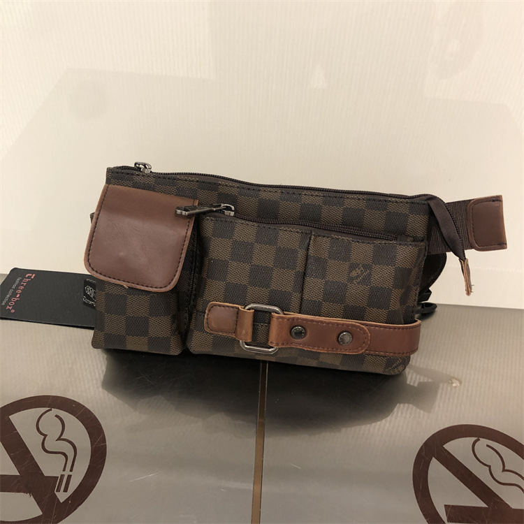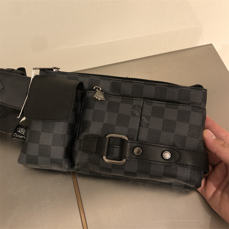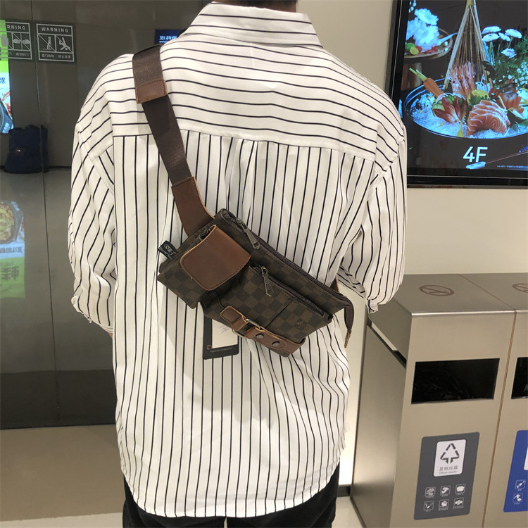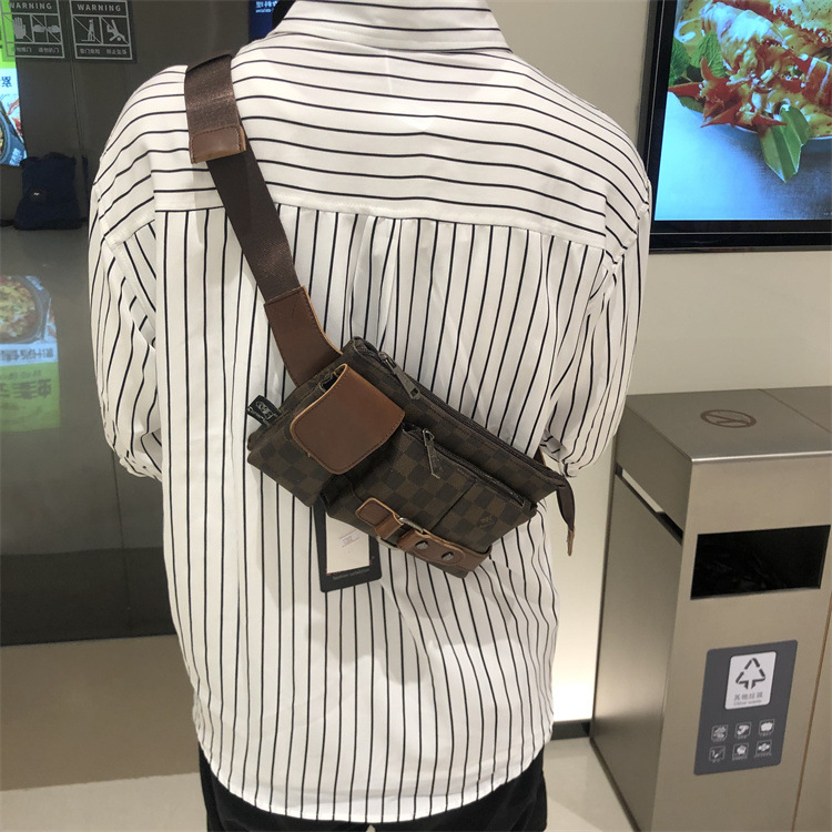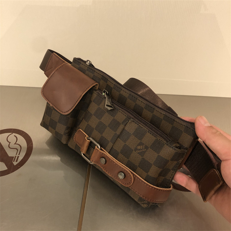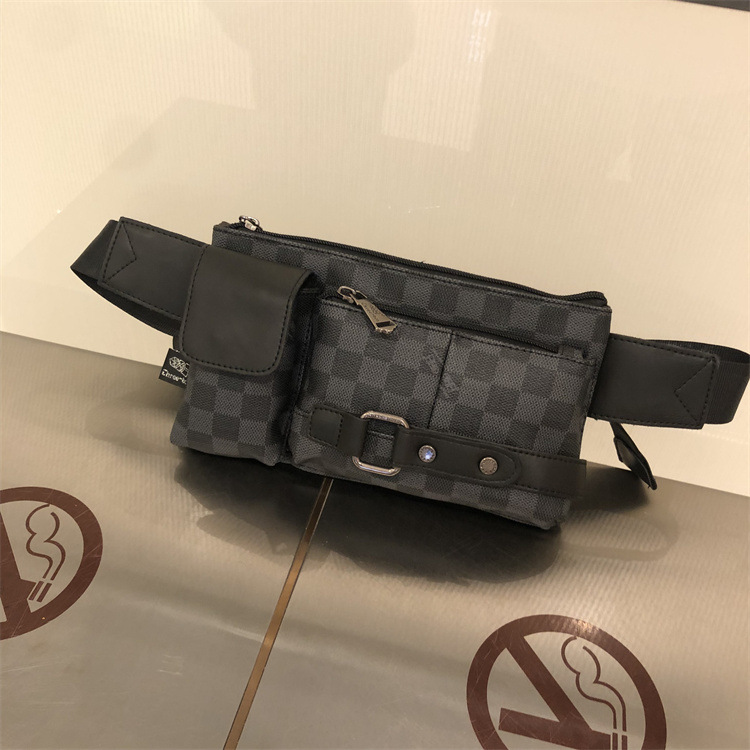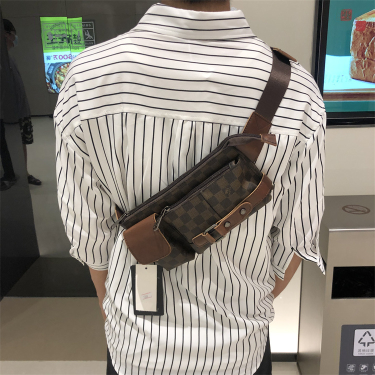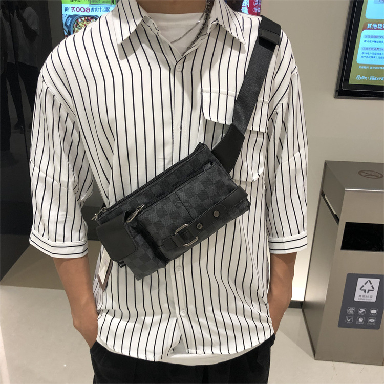 쓰리 박스 패션 남성 가슴 가방 트렌디 한 격자 무늬 크로스 바디 남성과 여성의 허리 가방 일본 지퍼 작은 배낭 남성용 가방스토어 가기