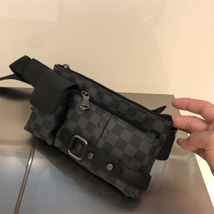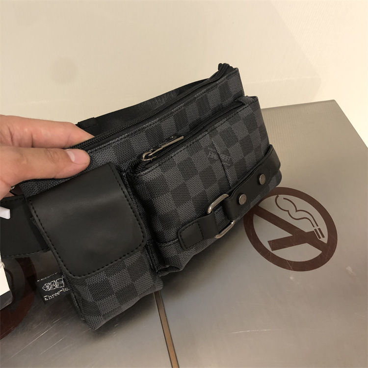 쓰리 박스 패션 남성 가슴 가방 트렌디 한 격자 무늬 크로스 바디 남성과 여성의 허리 가방 일본 지퍼 작은 배낭 남성용 가방