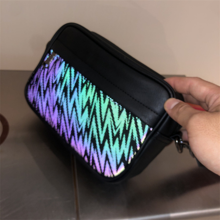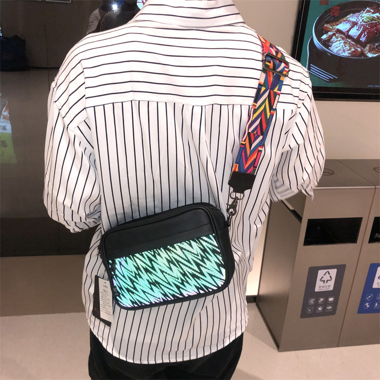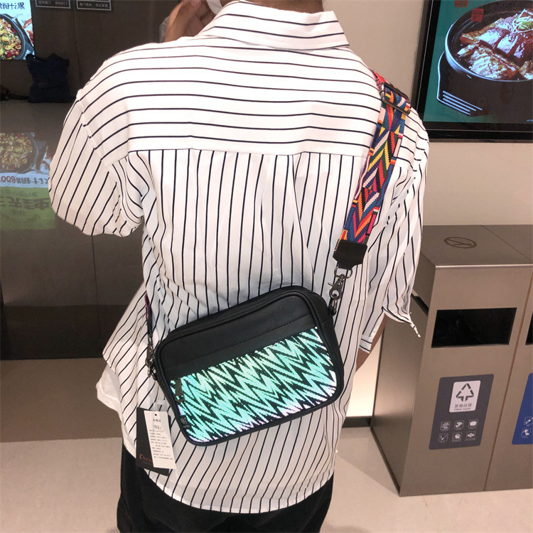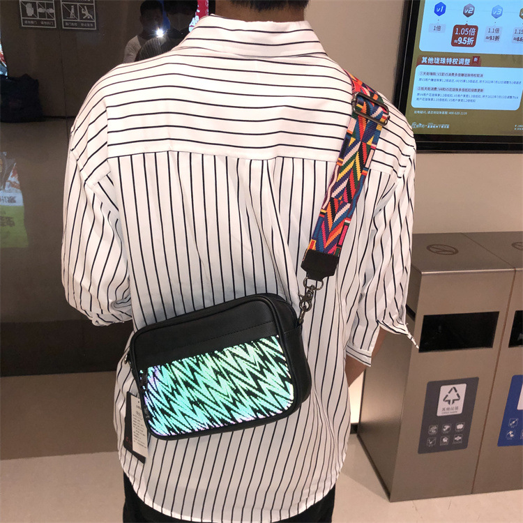 쓰리 박스 일본과 한국 스타일 트렌디 한 남성용 스트라이프 크로스바디 백 캐주얼 힙합 남성과 여성의 숄더백 유행 PU 크로스바디 백팩