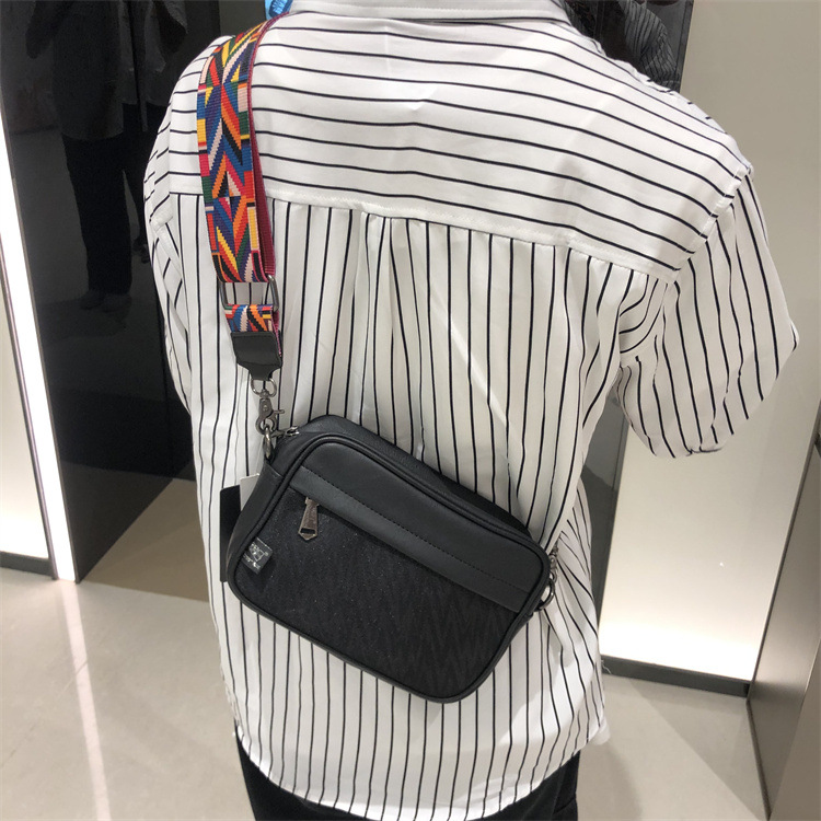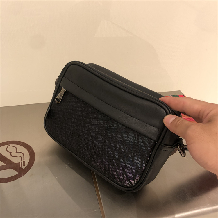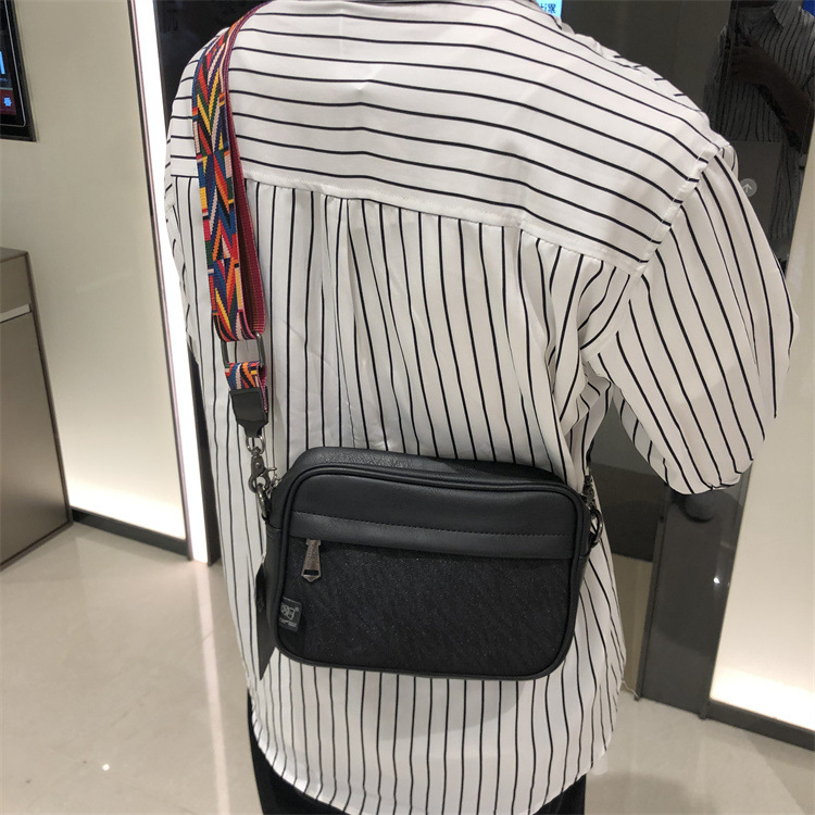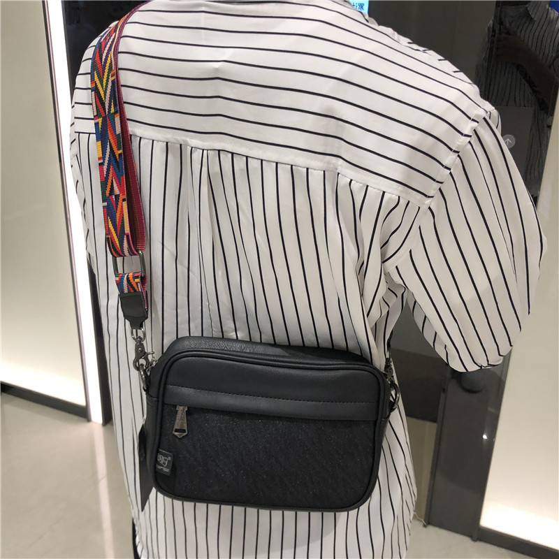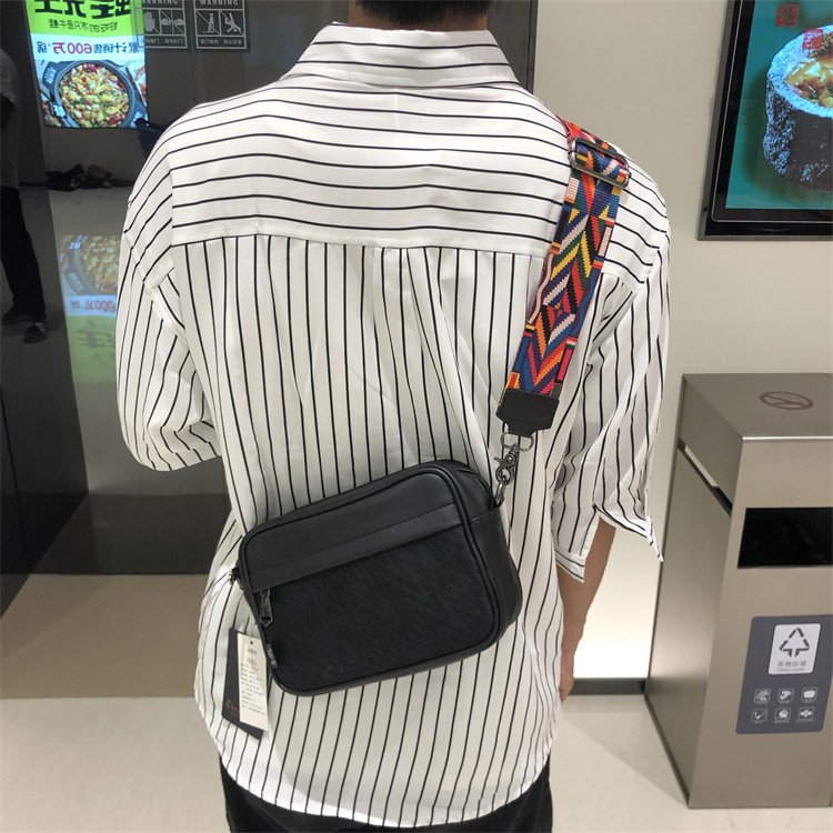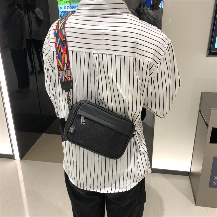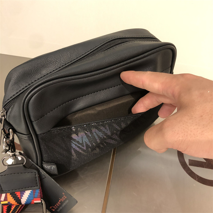 쓰리 박스 일본과 한국 스타일 트렌디 한 남성용 스트라이프 크로스바디 백 캐주얼 힙합 남성과 여성의 숄더백 유행 PU 크로스바디 백팩스토어 가기
