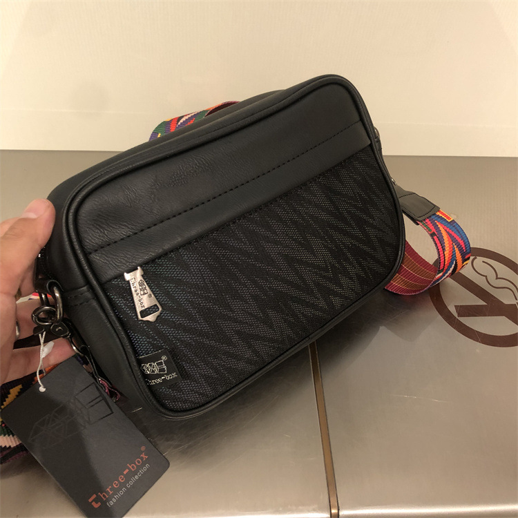 threebox日韩潮男条纹斜挎包 休闲嘻哈男女单肩包 时尚PU斜跨背包