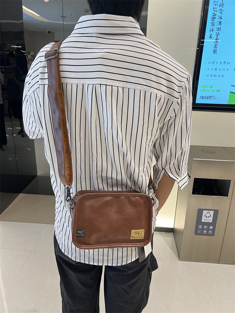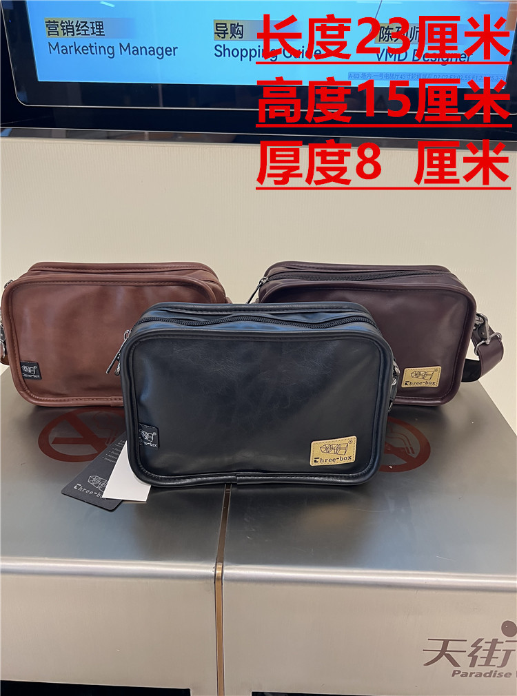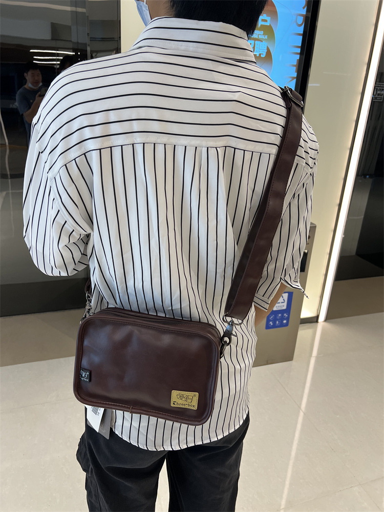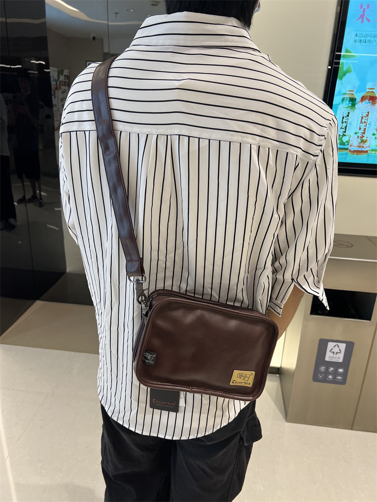 threebox潮牌男士软皮单肩包 休闲横款斜挎背包日系潮女手机小包