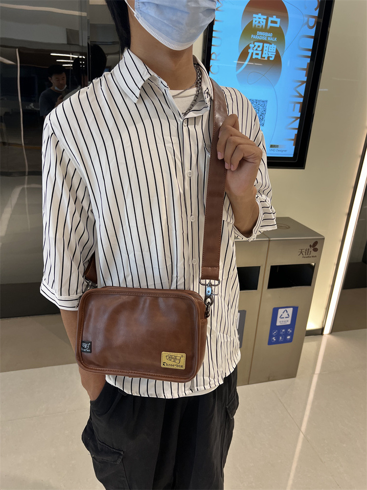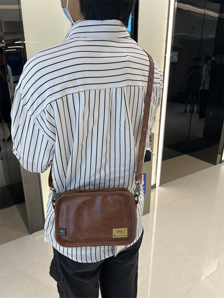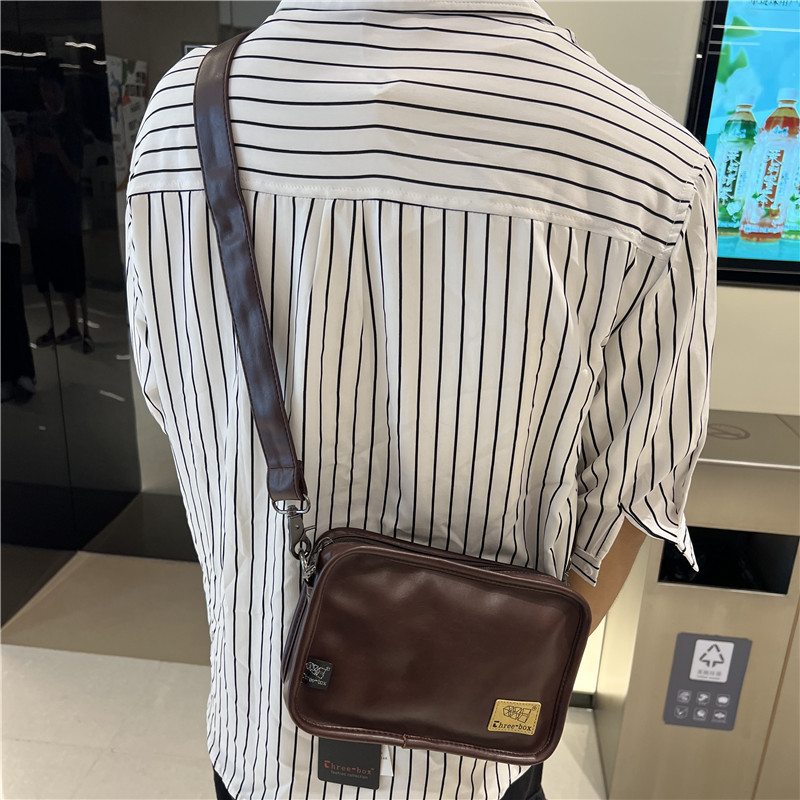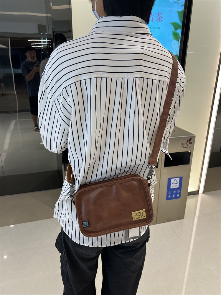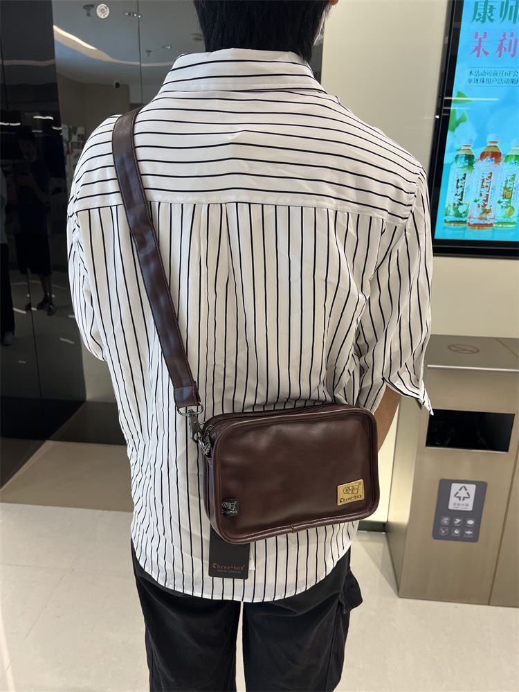 threebox潮牌男士软皮单肩包 休闲横款斜挎背包日系潮女手机小包