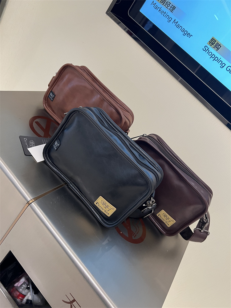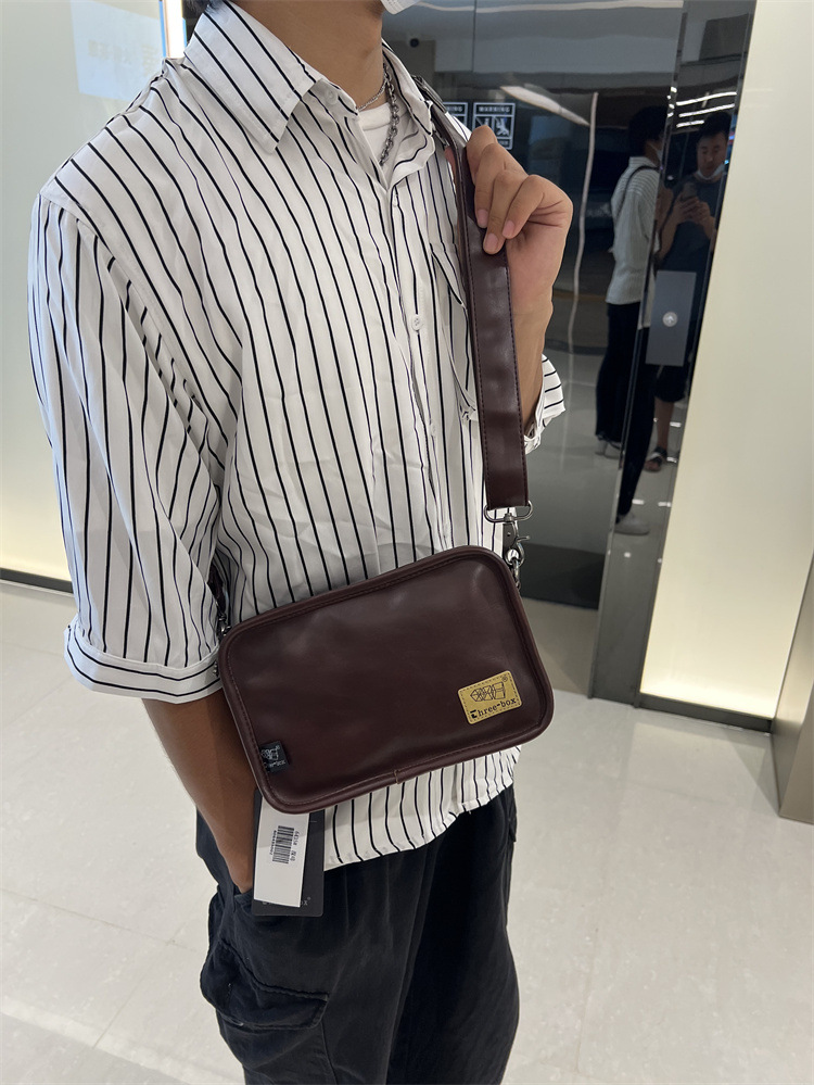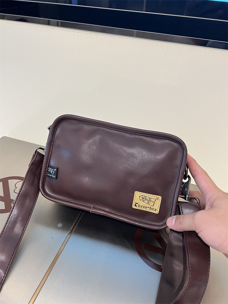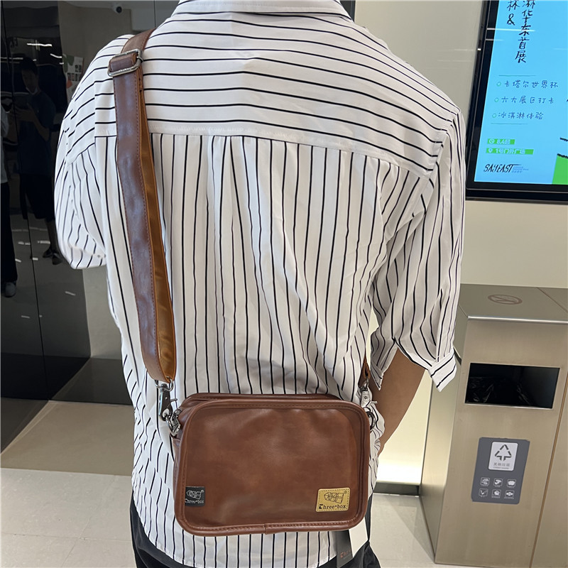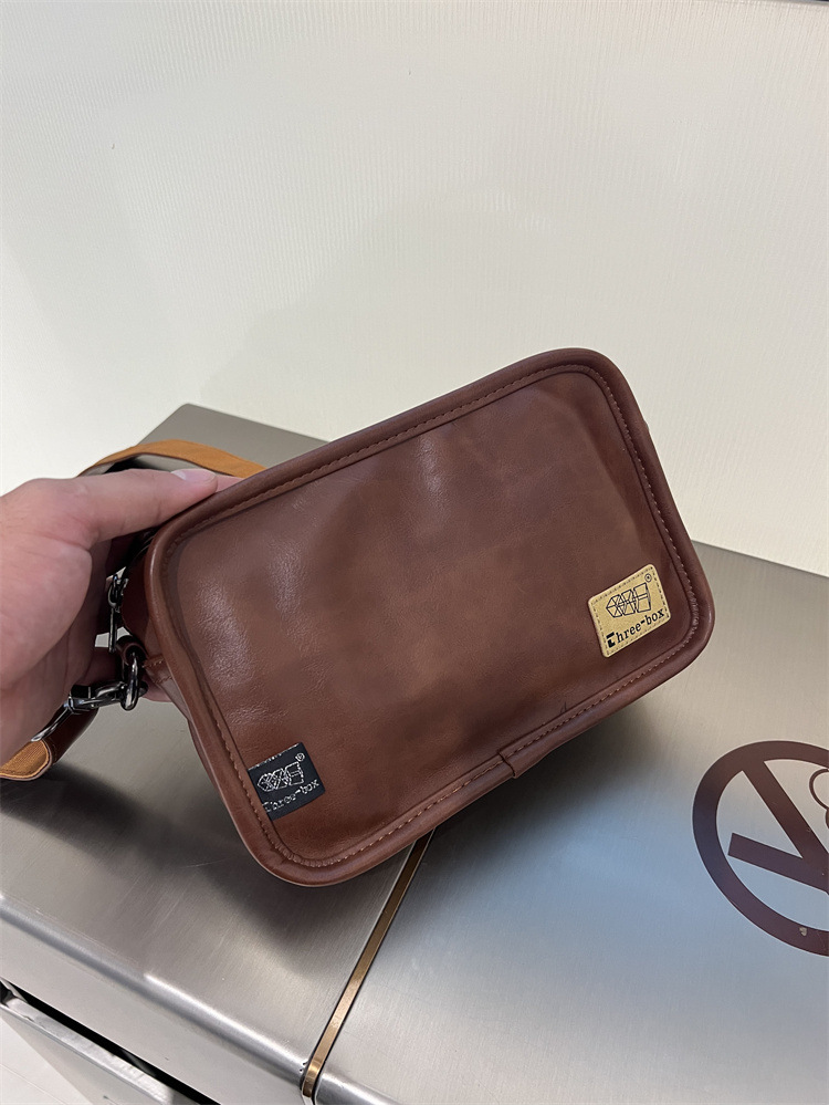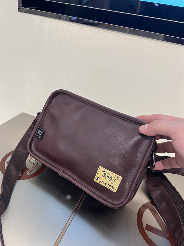 쓰리 박스 트렌디 브랜드 남성용 부드러운 가죽 숄더백 캐주얼 가로 크로스 바디 백팩 일본 유행 여성의 휴대 전화 작은 가방스토어 가기