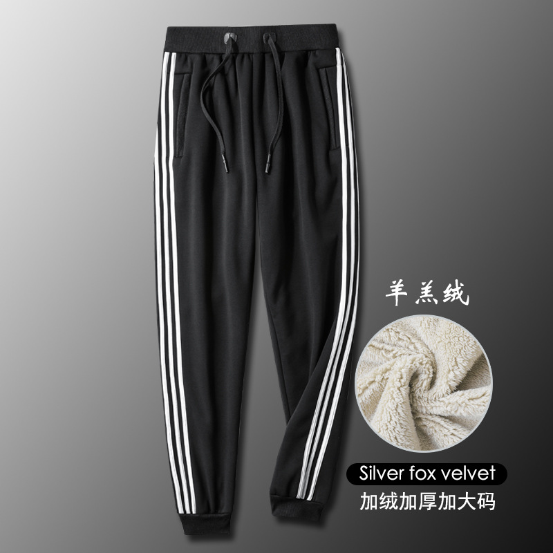 [공장] 기모 두꺼운 겨울 쓰리 바 스포츠 바지 남성용 램 벨벳 바지 따뜻한 스웨트 팬츠 남성용 발목 바지