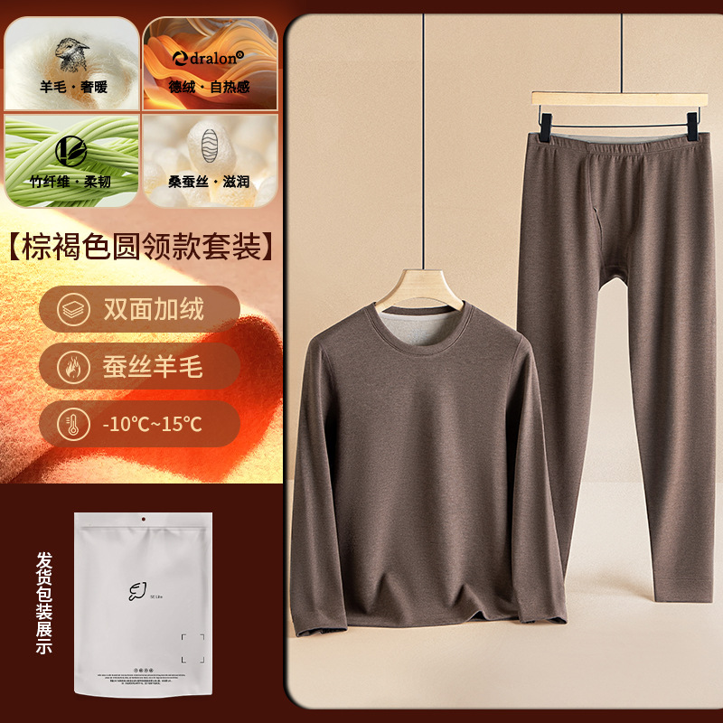 새로운 가을과 겨울 남성 실크 울 열 속옷 세트 국경 간 직접 공급 기모 두꺼운 가을 옷과 바지 기지스토어 가기