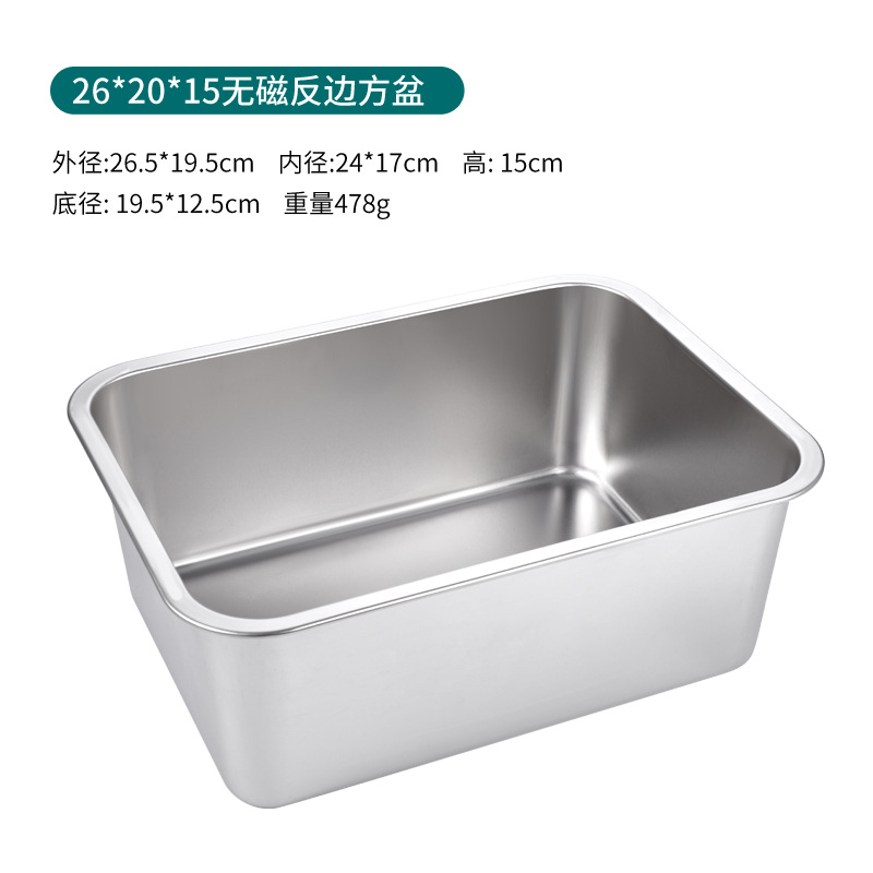 스테인레스 스틸 평면 바닥 사각 분지 두꺼운 직사각형 사각형 접시 뚜껑 뷔페 패스트 푸드 분지 깊은 찐 쌀 트레이 도매스토어 가기