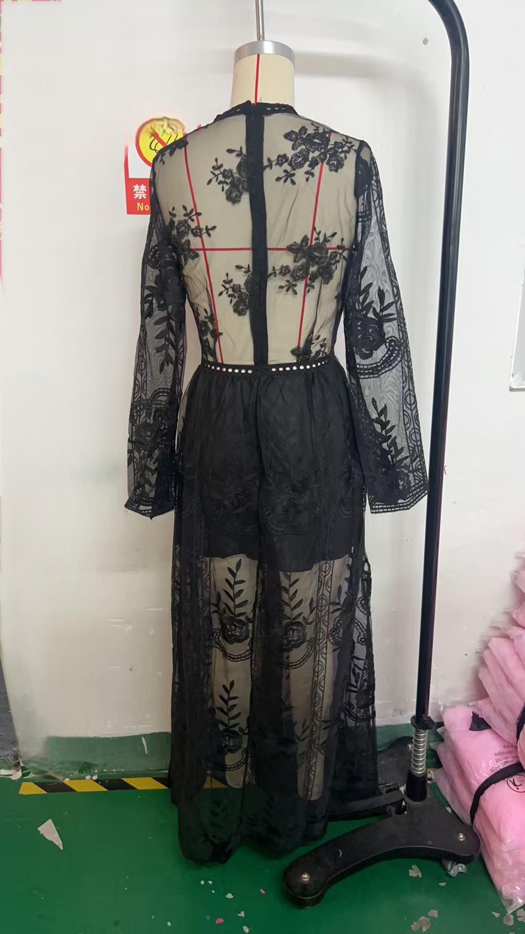초봄, 봄, 여름용 크로스보더 코트, 유럽 및 미국 여성복, 레이스 롱 드레스, 브이넥 솔리드 컬러 쉬폰 여름 드레스스토어 가기
