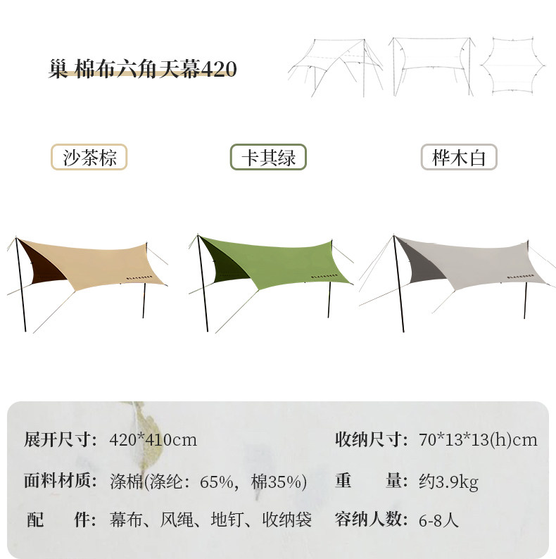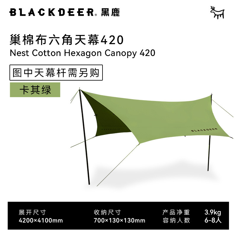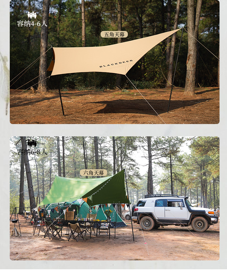 블랙디어 블랙 디어 둥지 면 천 캐노피 텐트 야외 다각형 대형 캠핑 방수 자외선 차단 420