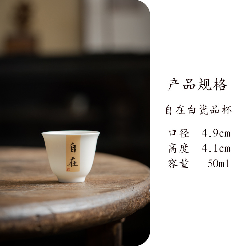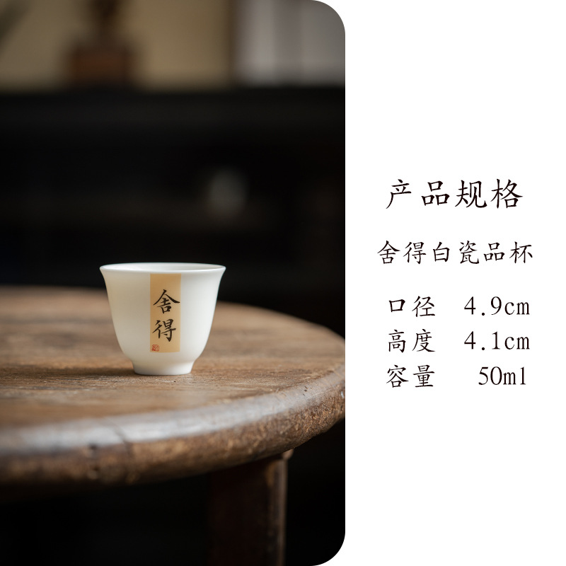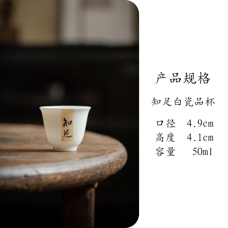 Jiujiang 스타일 화이트 도자기 찻잔 중국 골동품 쿵푸 차 세트 찻잔 세라믹 서예 싱글 컵 마스터 컵스토어 가기