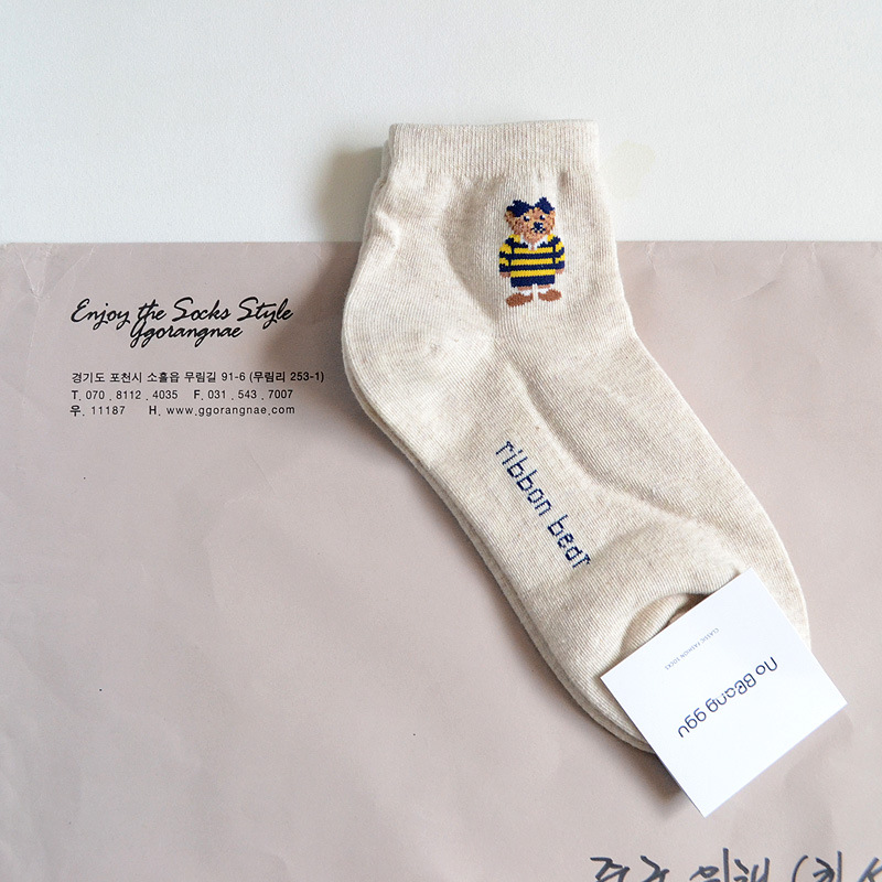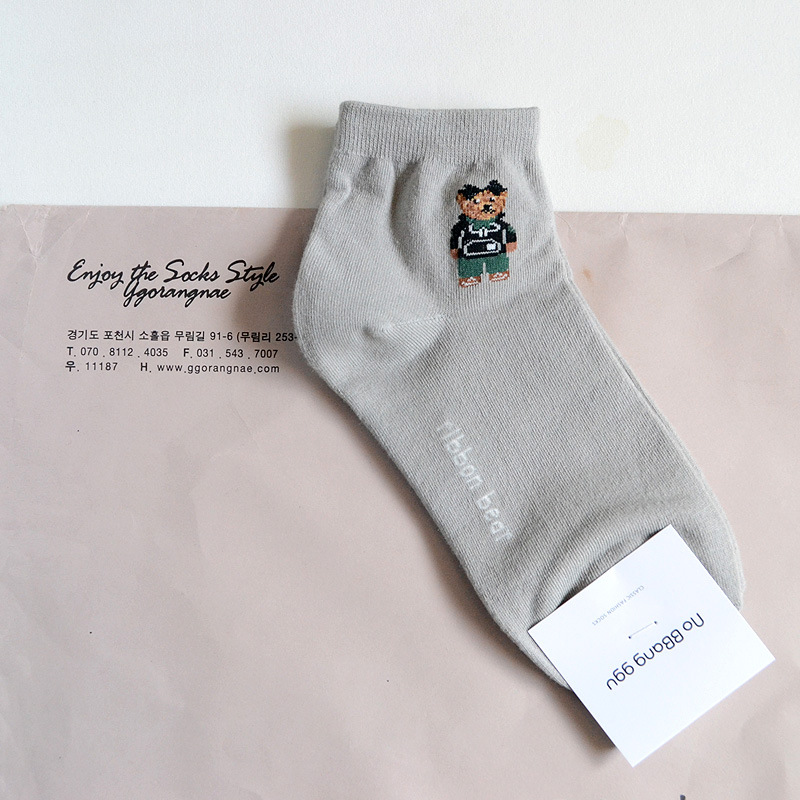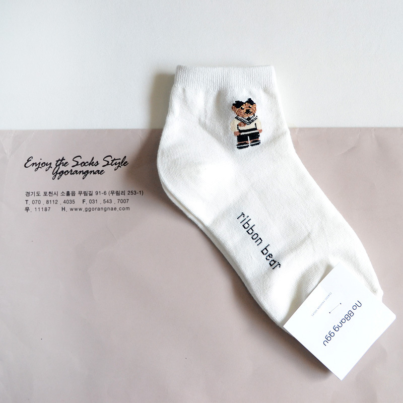 0단축 여성 양말 한국 양말 no bbang ggu 귀여운 만화 곰 소녀 대학 스타일 패션 로우컷스토어 가기