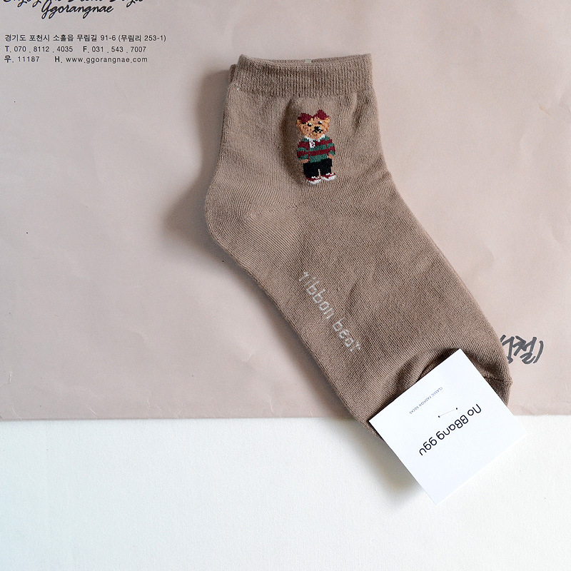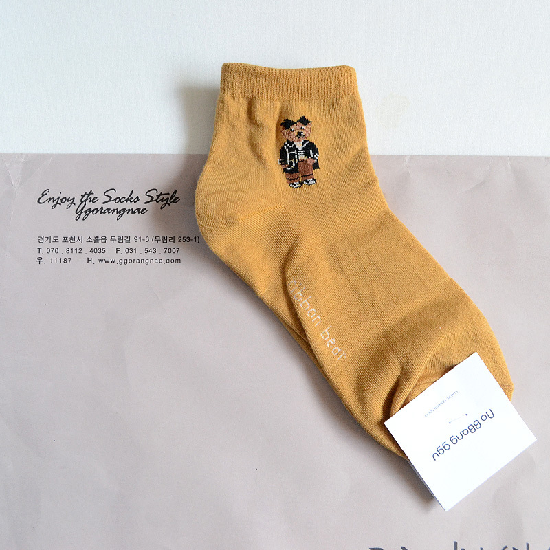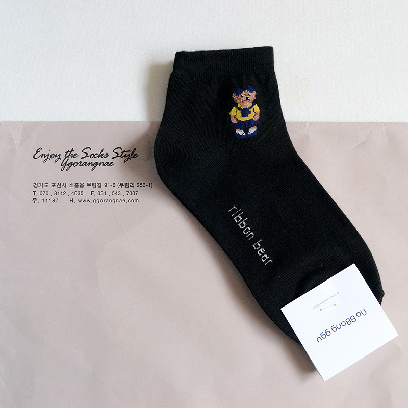 0단축 여성 양말 한국 양말 no bbang ggu 귀여운 만화 곰 소녀 대학 스타일 패션 로우컷
