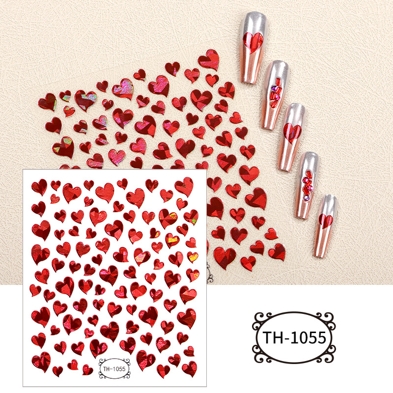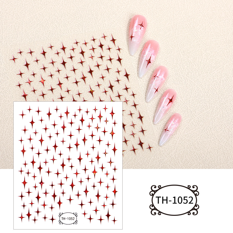 Zhengxiang 그물 빨간 레이저 사랑 네일 아트 스티커 DIY 네일 아트 작은 데칼 별 네일 아트 보석 INS 네일 스티커스토어 가기