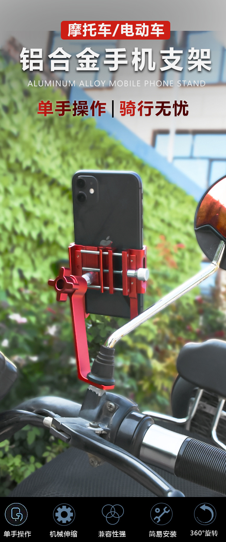 • 720 백미러 휴대 전화 브래킷 티타늄