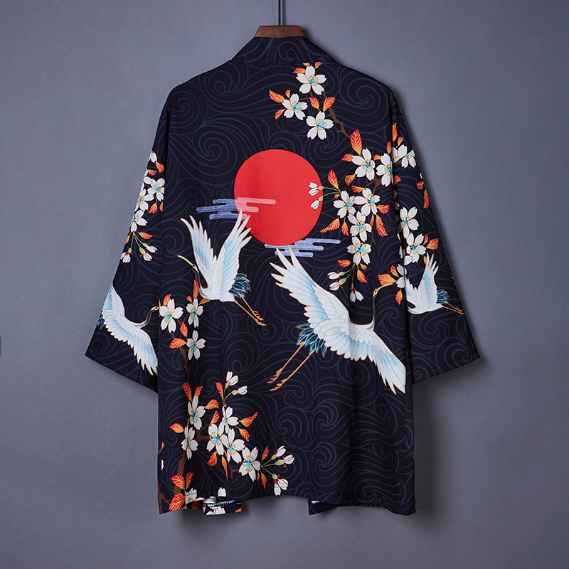국경을 넘는 새로운 크레인 디지털 인쇄 기모노 남성과 여성의 트렌디 한 망토 코트 파자마 카디건