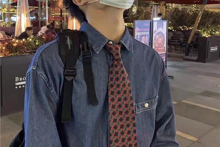 넥타이 남자의 캐주얼 한국 스타일 인쇄 여자의 레드 패턴 9cm 복고풍 홍콩 스타일 문학과 예술 영국 대학 원피스 블루스토어 가기