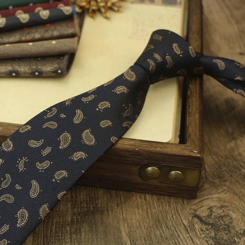 새로운 스타일 넥타이 남자의 복고풍 캐슈 패턴 영국 8cm 공식 원피스 전문 비즈니스 손 다크 브라운 다크 그린스토어 가기