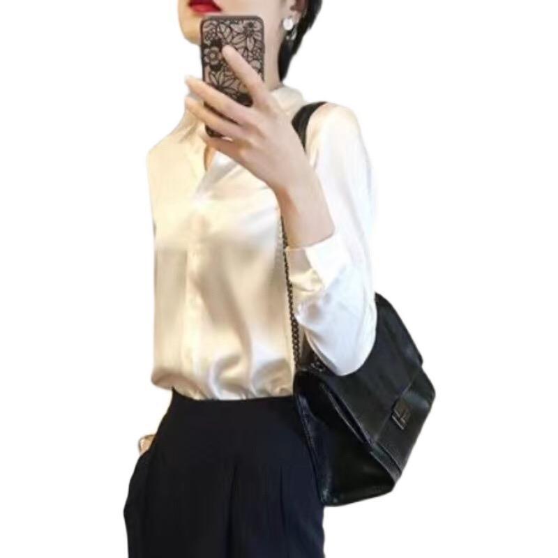 새틴 셔츠 여성의 봄과 가을 긴 소매 2022 새로운 전문 쉬폰 탑 게으른 단색 디자인 셔츠스토어 가기
