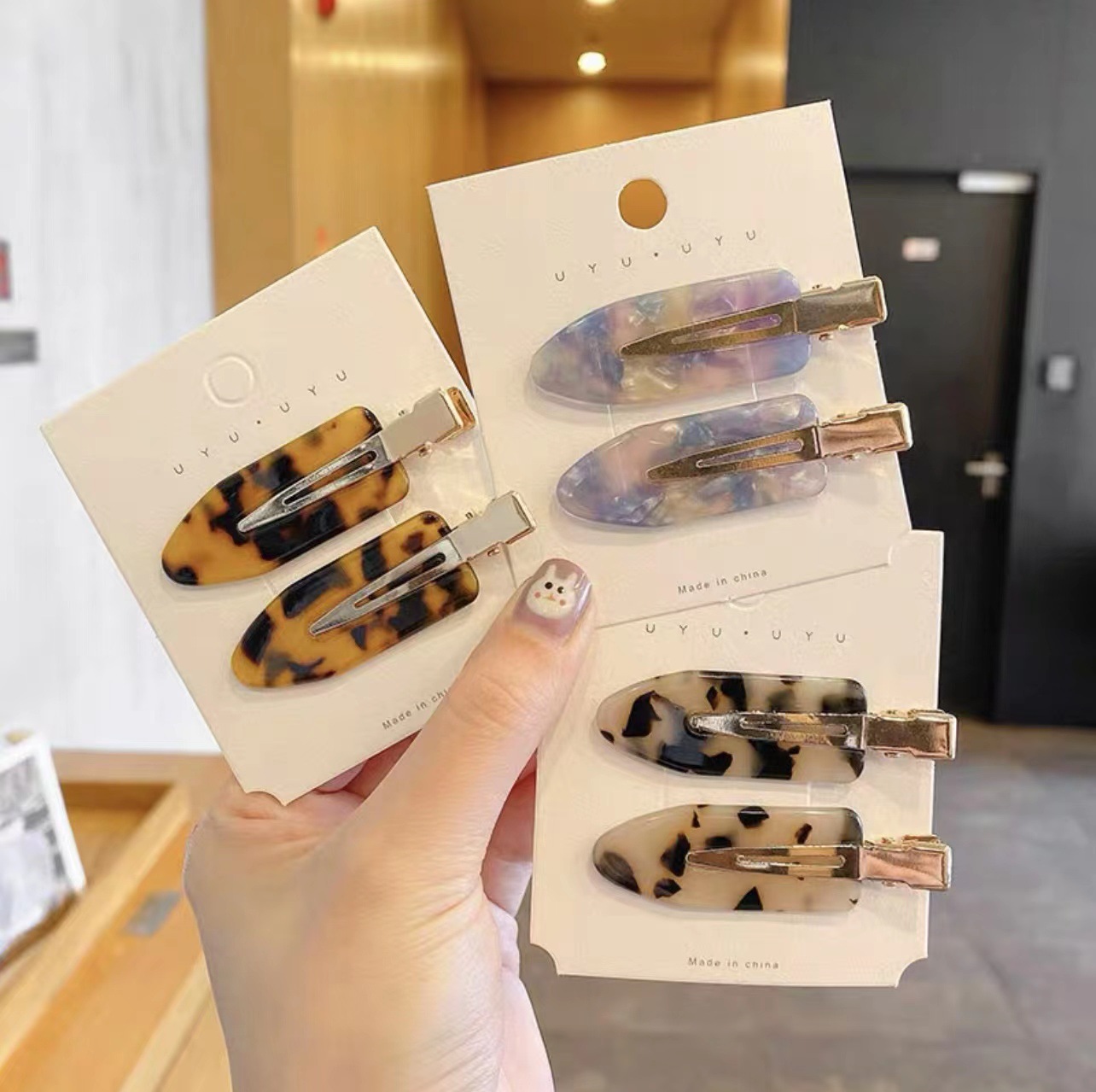 재고 도매 아세트산 머리핀 사이드 앞머리 클립 원활한 머리핀 여자의 여름 그물 빨간 화장 duckbill 클립 머리 장식스토어 가기