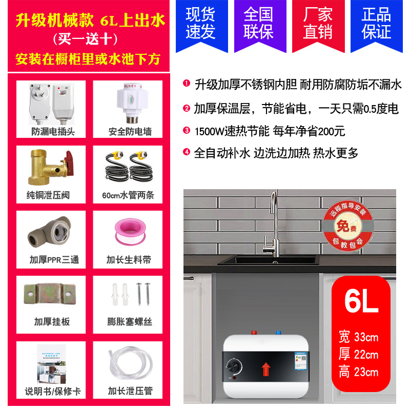 국경 도매 작은 부엌 보물 물 저장 전기 온수기 빠른 난방 가정용 작은 부엌 식기 세척 보물 6 리터 8 리터 15 리터스토어 가기