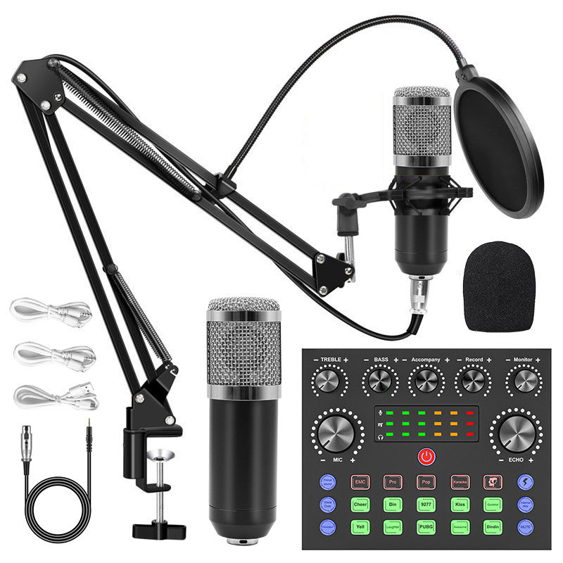크로스 보더 BM800 콘덴서 마이크 V8 휴대 전화 영어 사운드 카드 컴퓨터 usb 캔틸레버 브래킷 라이브 방송 세트