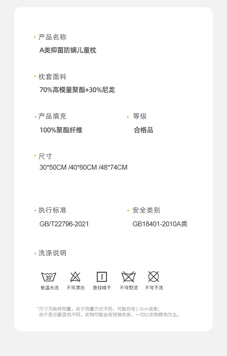 고급 클래스 A 산모 및 유아 등급 어린이 베개 항균 진드기 방지 초등학생 기숙사 빨 초박형 낮은 베개 코어 가정용