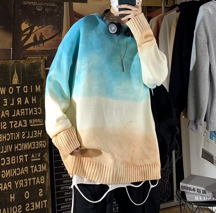 홍콩 스타일 커플 스웨터 남성용 가을과 겨울 트렌디 한 대비 타이 염색 스웨터 한국식 루즈한 캐주얼 니트 코트 여성