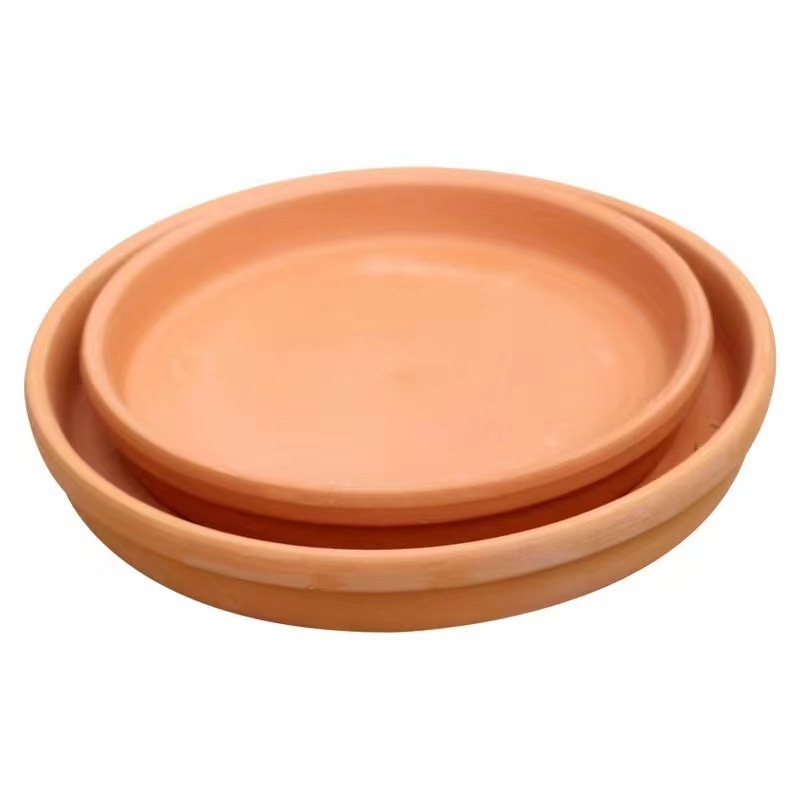 간단한 빨간 도자기 쟁반 원형 점토 화분 쟁반 물을 받는 낮은 접시 세라믹 화분 쟁반
