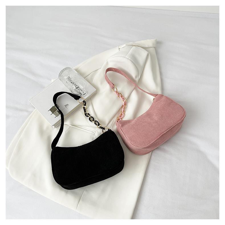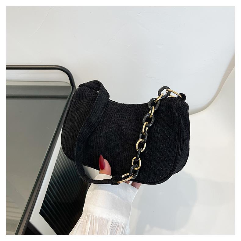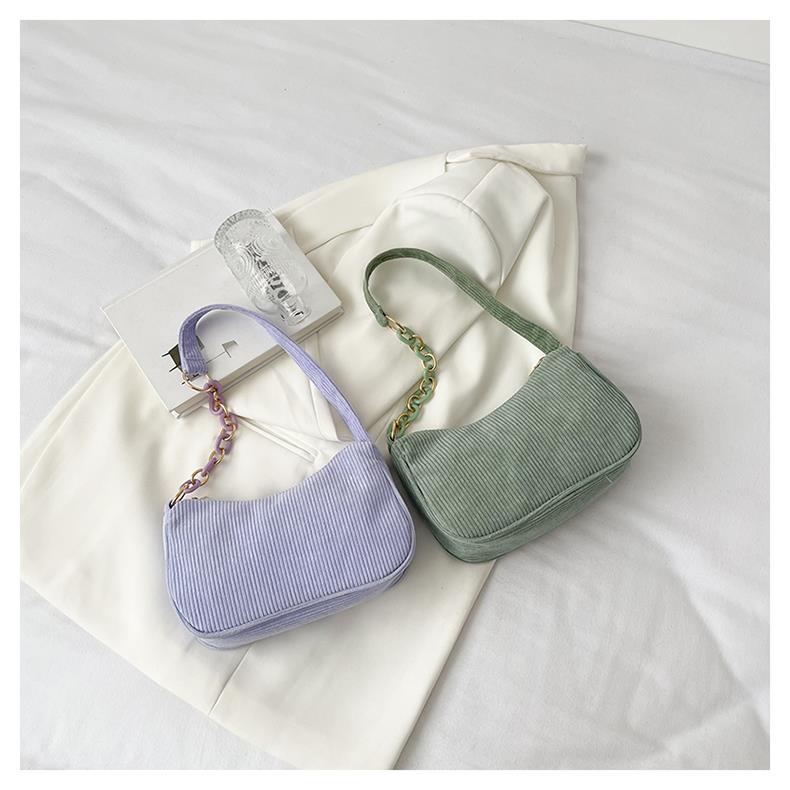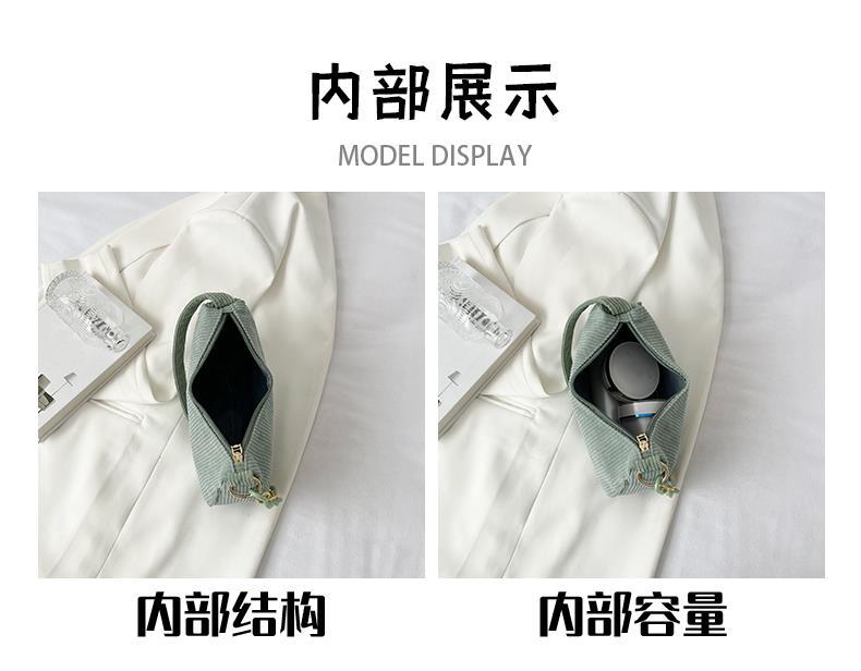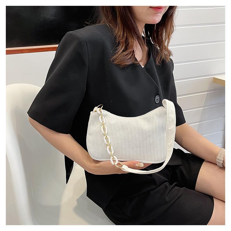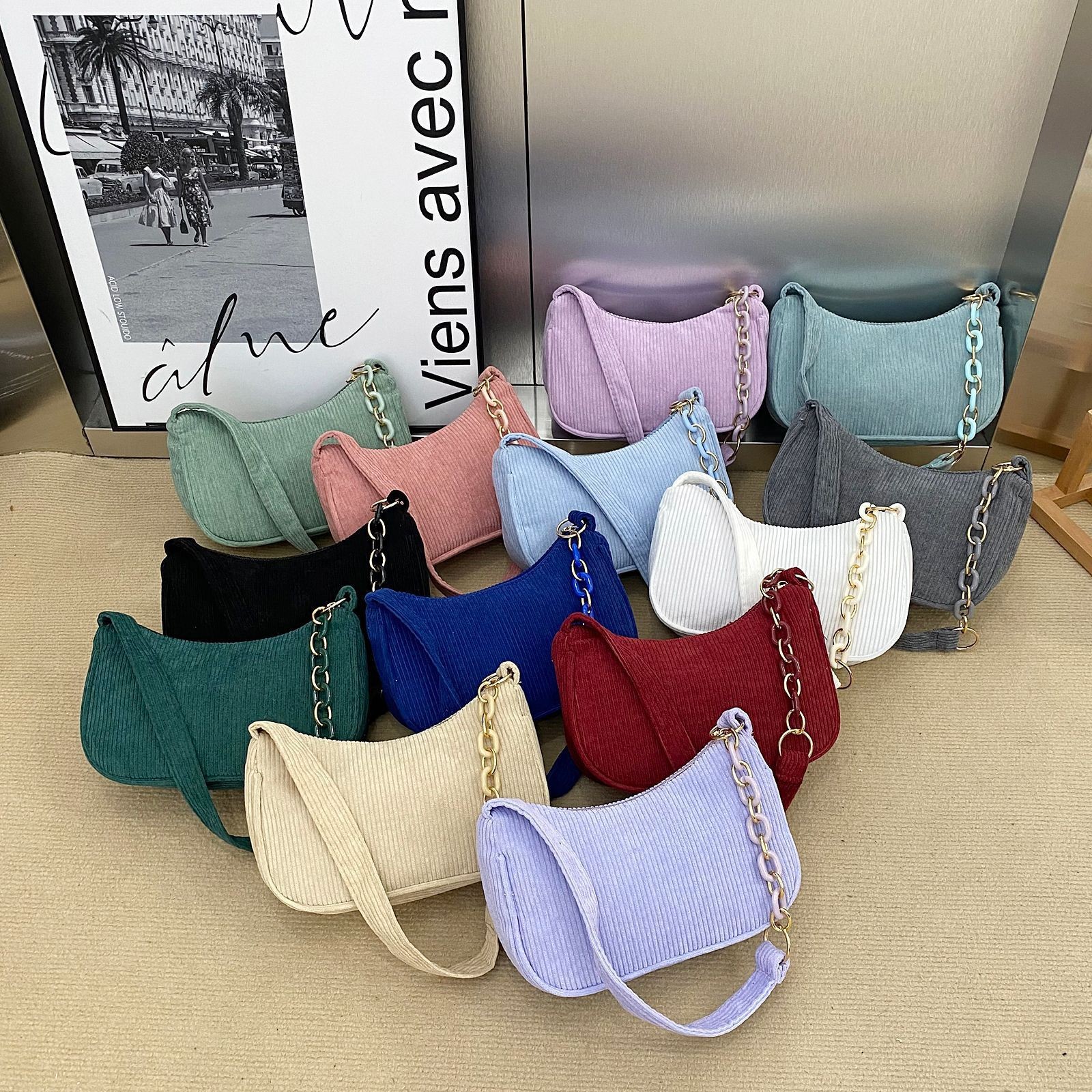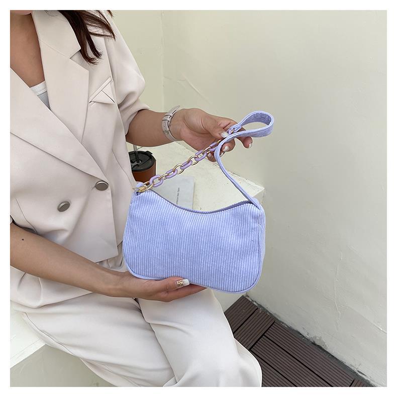한국 스타일 예술적 천 가방 심플 캐주얼 스트라이프 벨벳 숄더 여성 가방 단색 미니 크로스 바디 백 휴대용 캔버스 가방