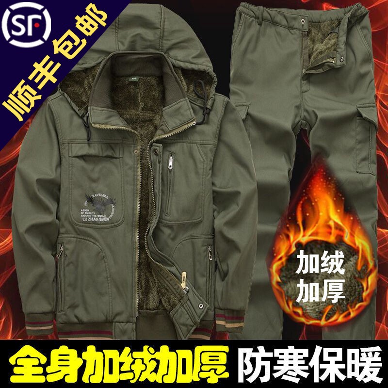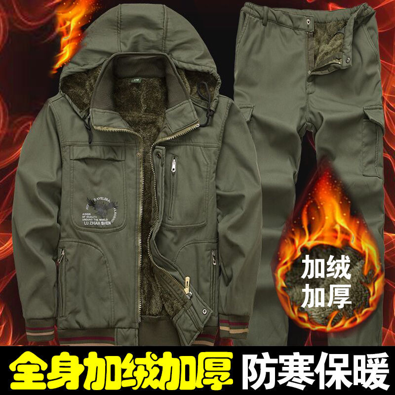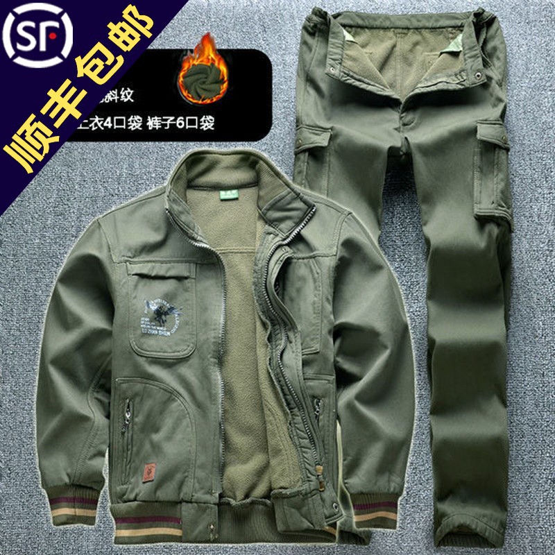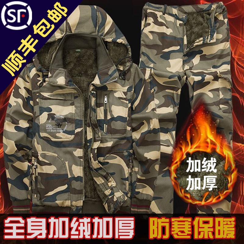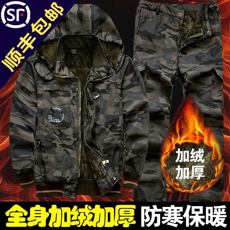 겨울 기모 작업복 세트 남자의 위장 의류 용접 공장 의류 두꺼운 보온 방한 공구 노동 보호 작업 시스템스토어 가기