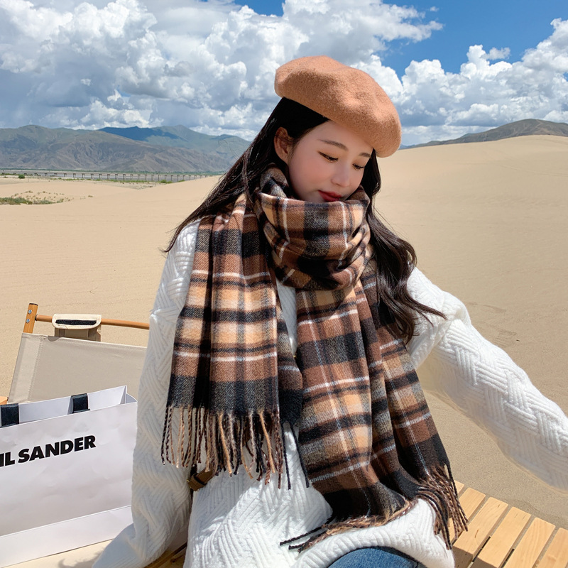 스카프 여성 가을과 겨울 모든 경기 한국식 캐시미어 격자 무늬 스카프 학생 부드러운 한국식 특대형 두꺼운 스카프 숄