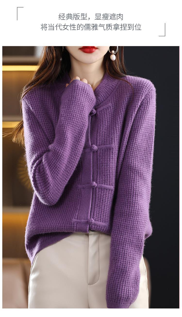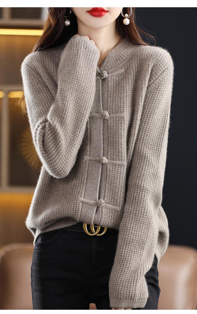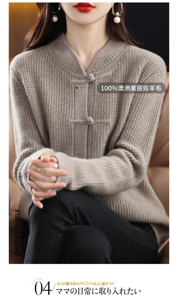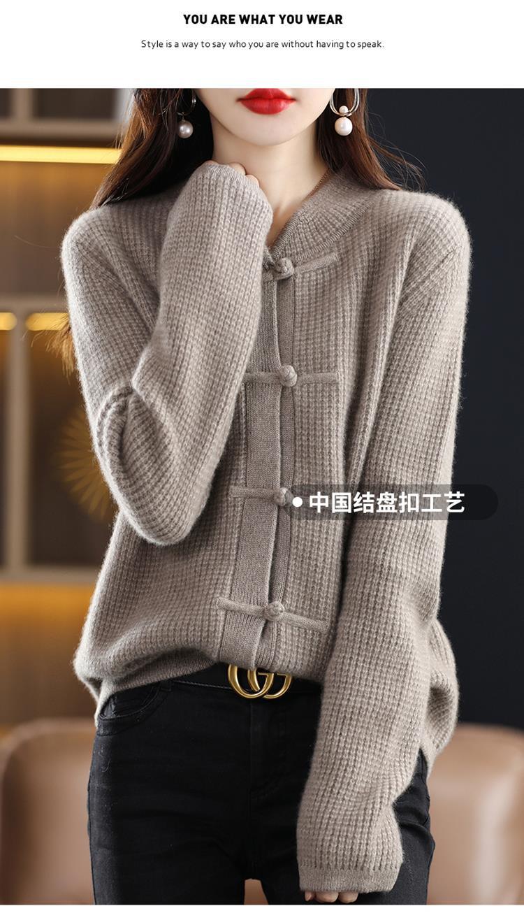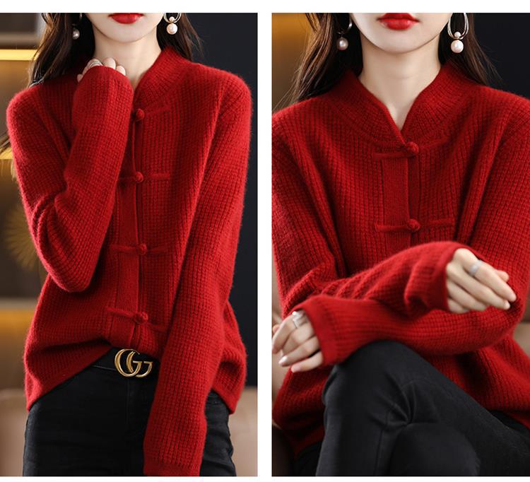 캐시미어 카디건 여성의 가을과 겨울 새로운 중국 레트로 반 높이 레드 스웨터 코트 느슨한 솔리드 컬러 울 탑스토어 가기