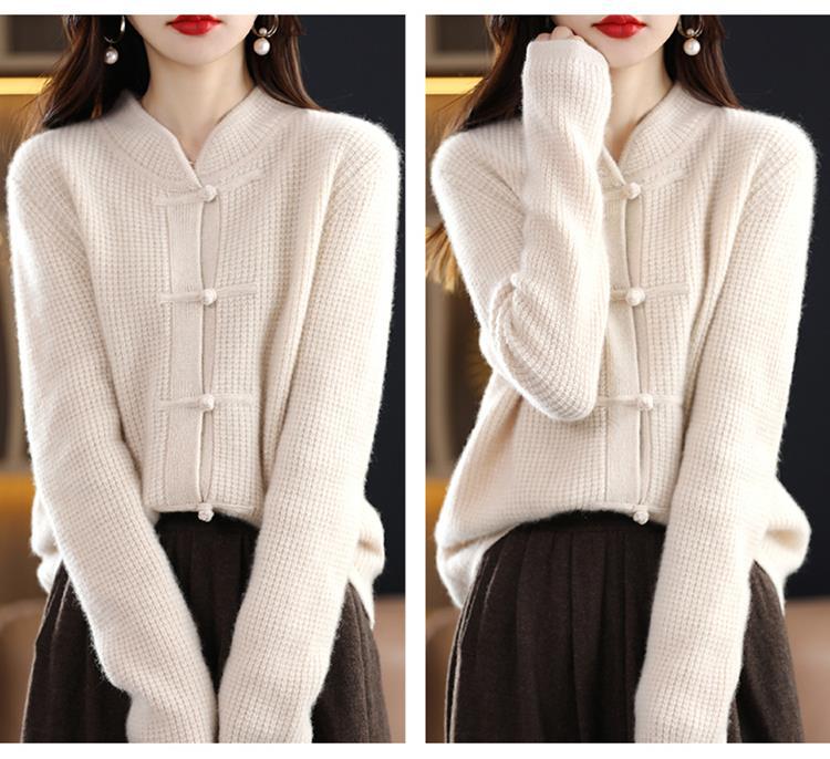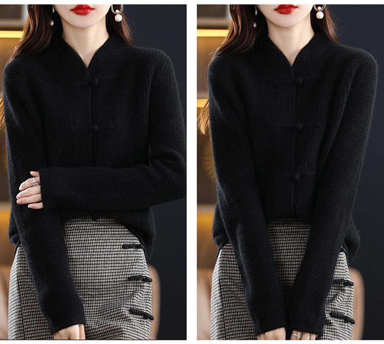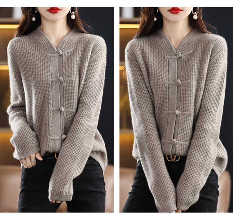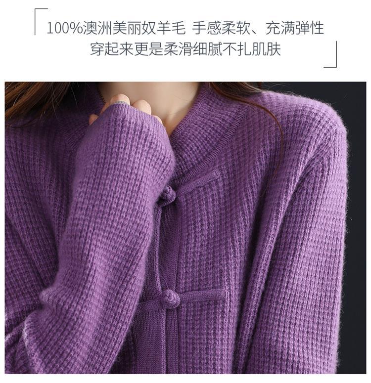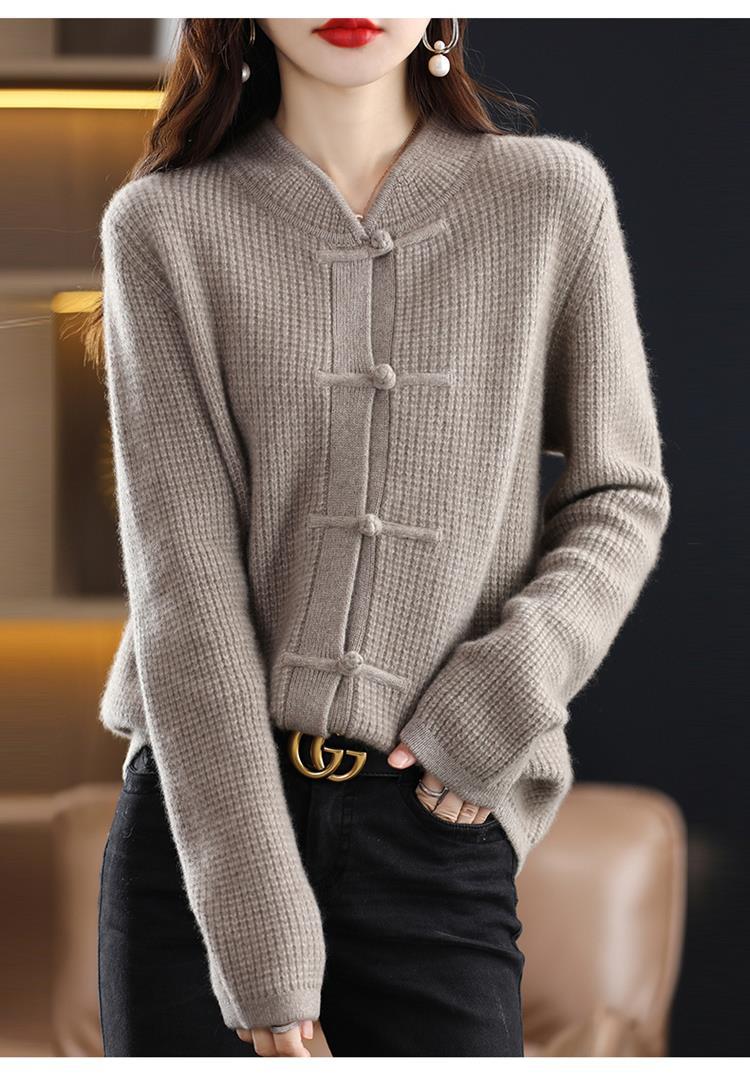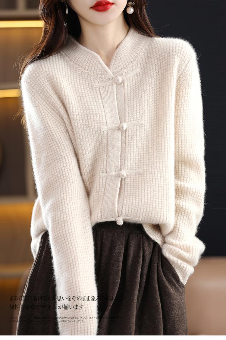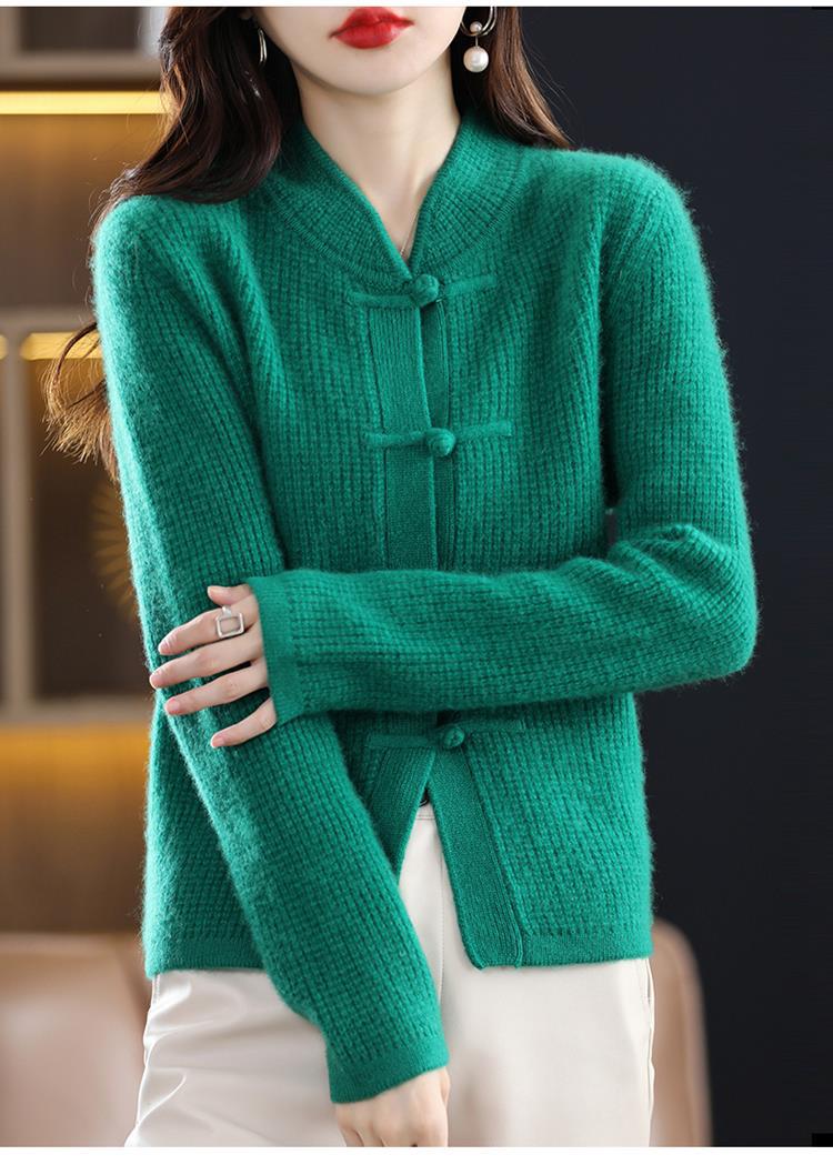 캐시미어 카디건 여성의 가을과 겨울 새로운 중국 레트로 반 높이 레드 스웨터 코트 느슨한 솔리드 컬러 울 탑스토어 가기