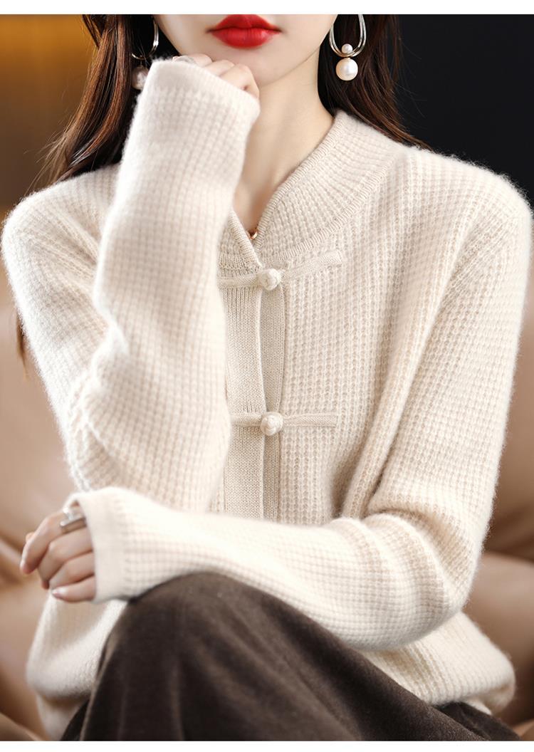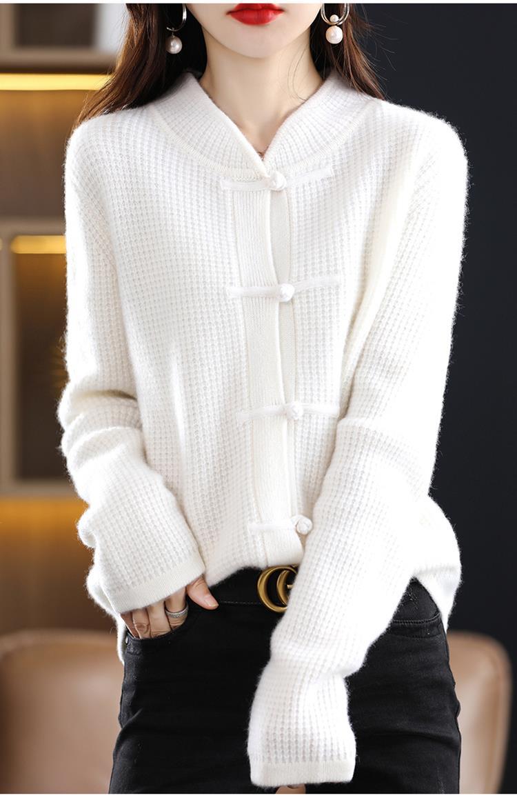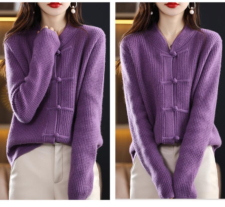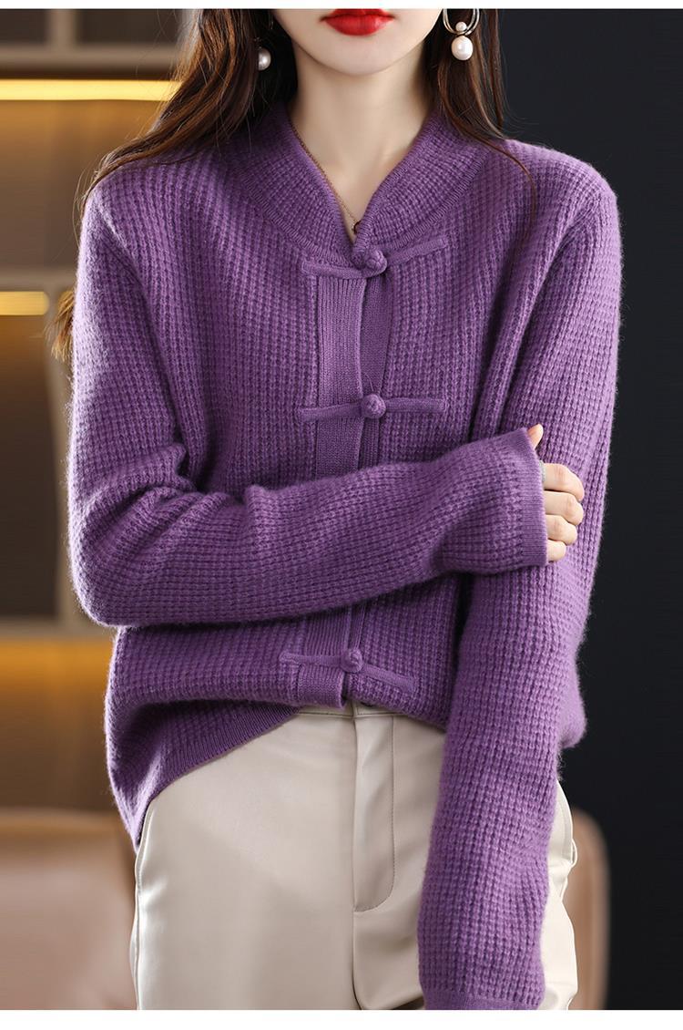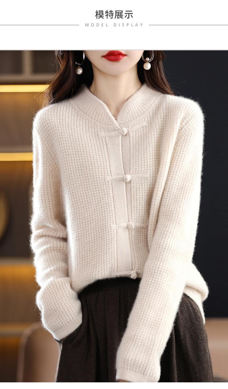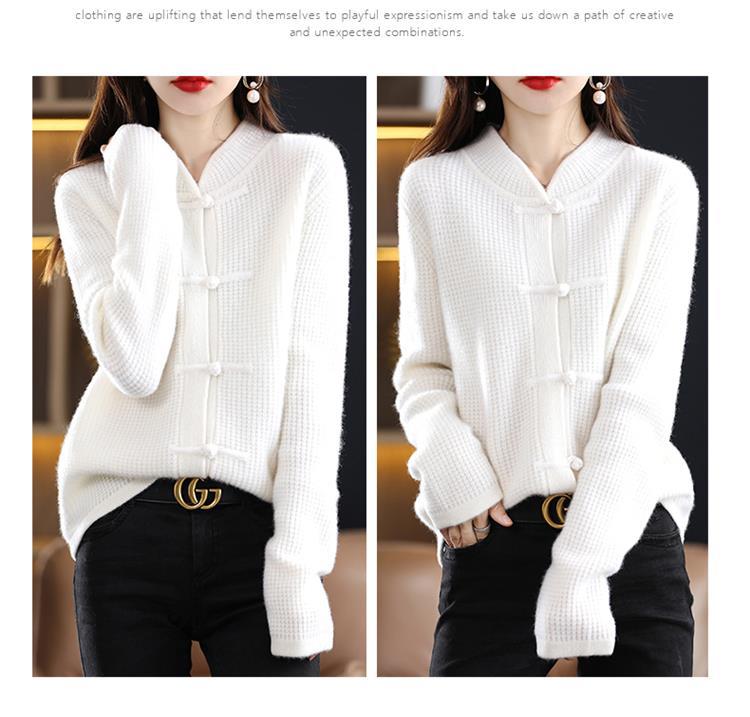 캐시미어 카디건 여성의 가을과 겨울 새로운 중국 레트로 반 높이 레드 스웨터 코트 느슨한 솔리드 컬러 울 탑스토어 가기