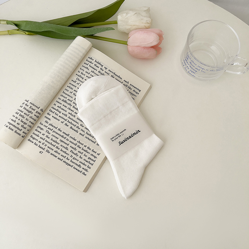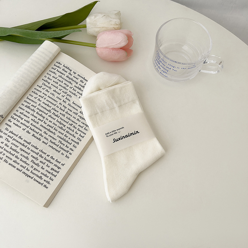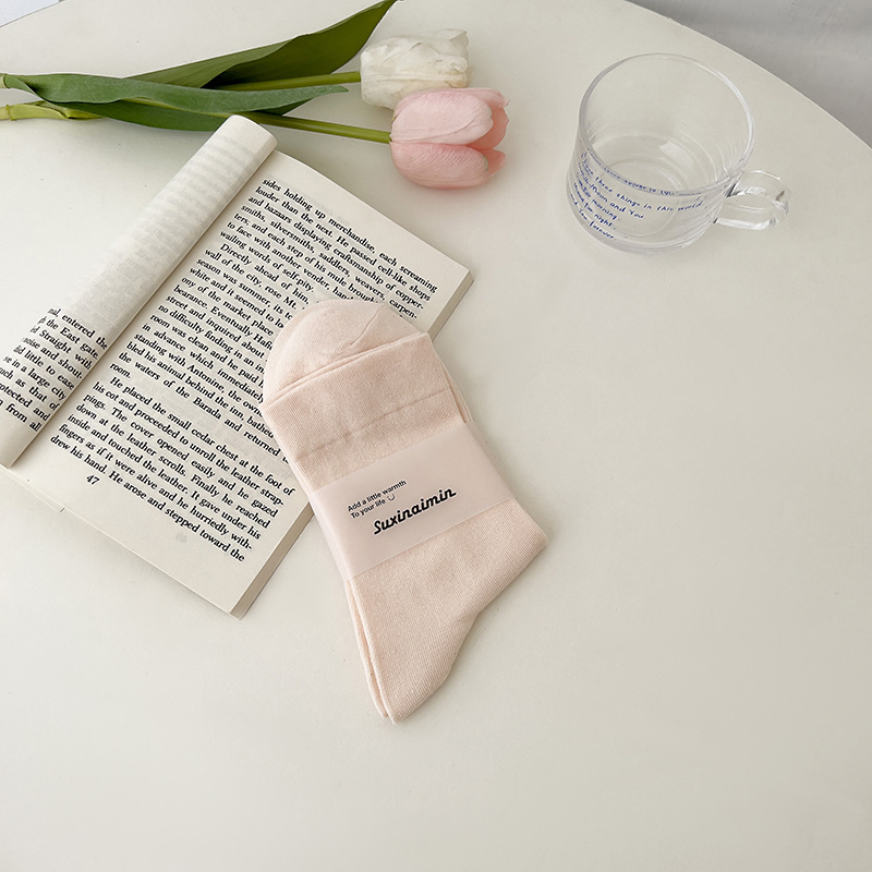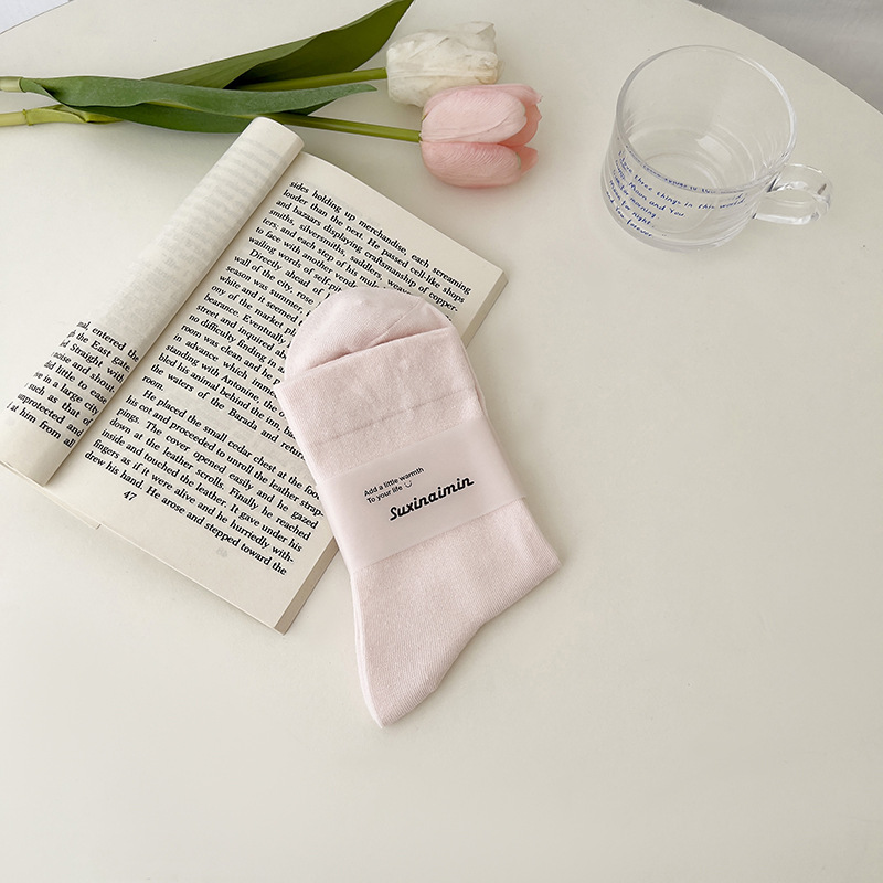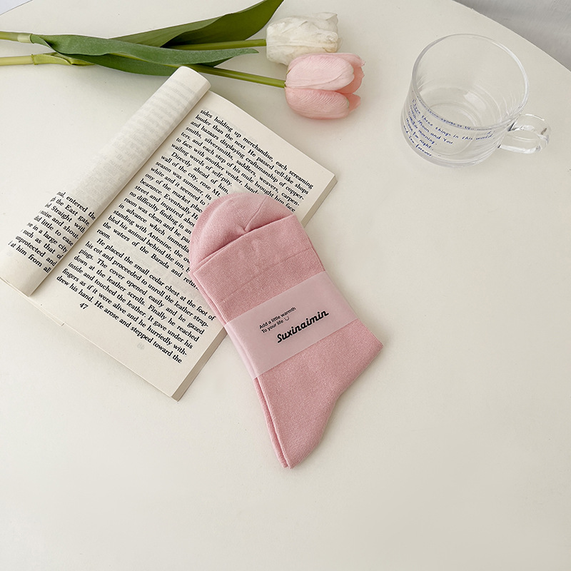 핑크 양말 여성의 가을 새로운 순수 컬러 중간 종아리 길이 양말 인기있는 그물 붉은 태양 시리즈 뼈없는 사탕 색 감금 양말 면화스토어 가기