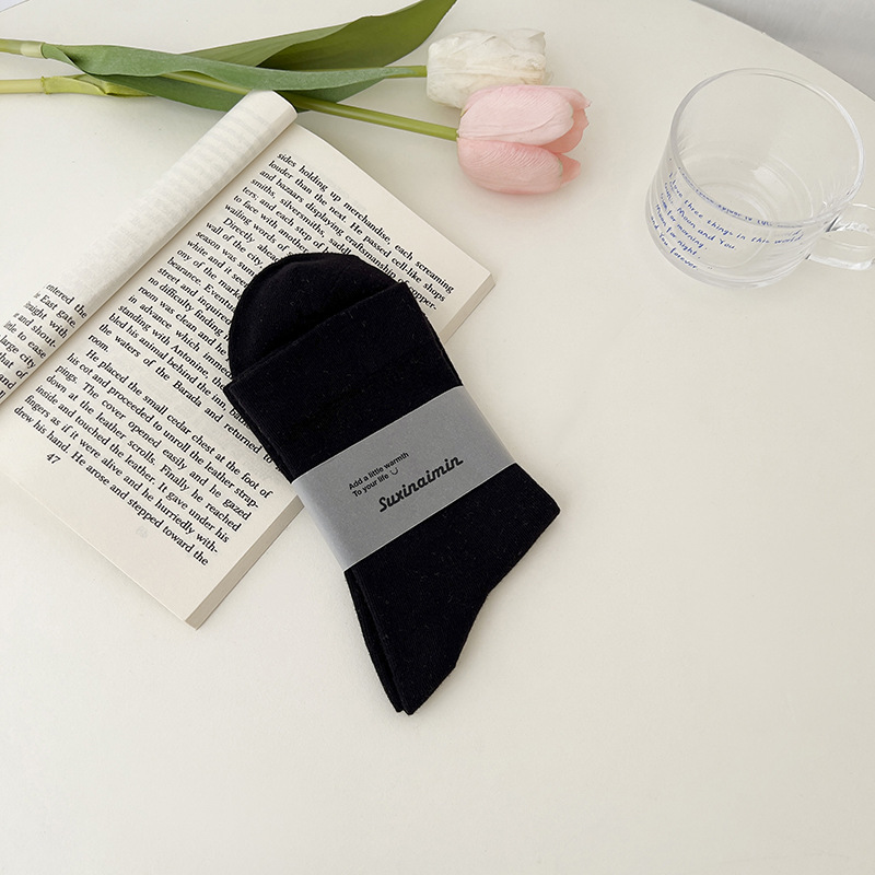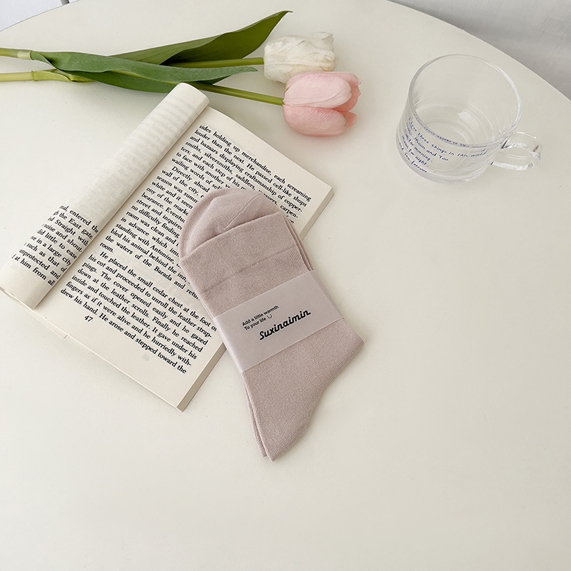 핑크 양말 여성의 가을 새로운 순수 컬러 중간 종아리 길이 양말 인기있는 그물 붉은 태양 시리즈 뼈없는 사탕 색 감금 양말 면화