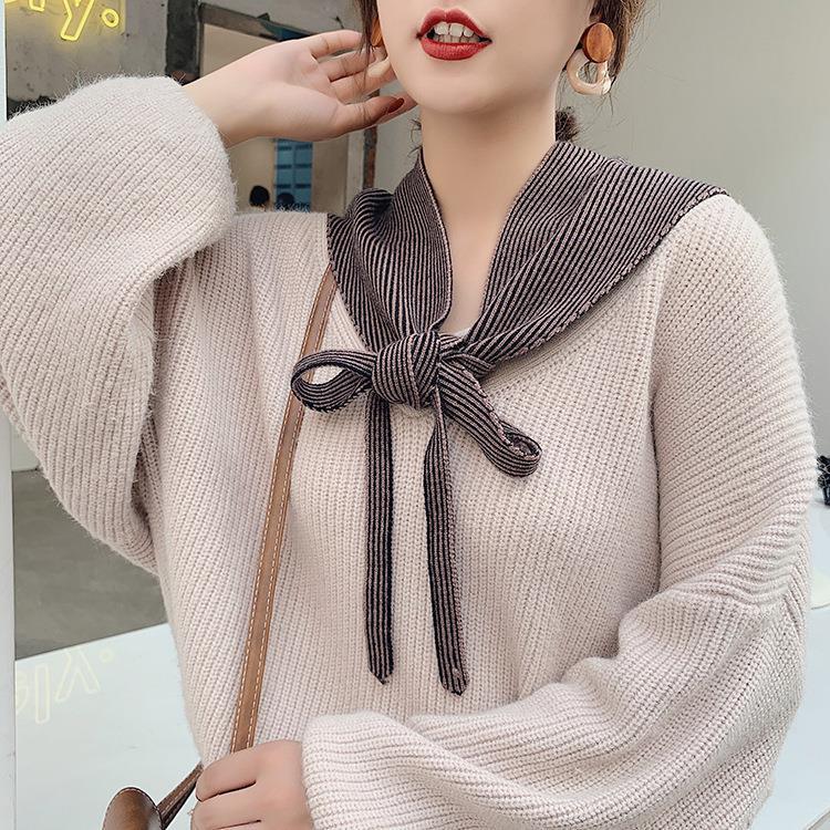 한국식 핀 스트라이프 울 작은 조끼 여성용 다기능 스카프 모조 캐시미어 활 니트 가짜 칼라 스카프 가을과 겨울