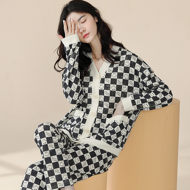 잠옷 여성 봄과 가을 면 긴팔 바지 기모노 일본식 면 캐주얼 아웃웨어 가디건 여성 가정복 세트스토어 가기